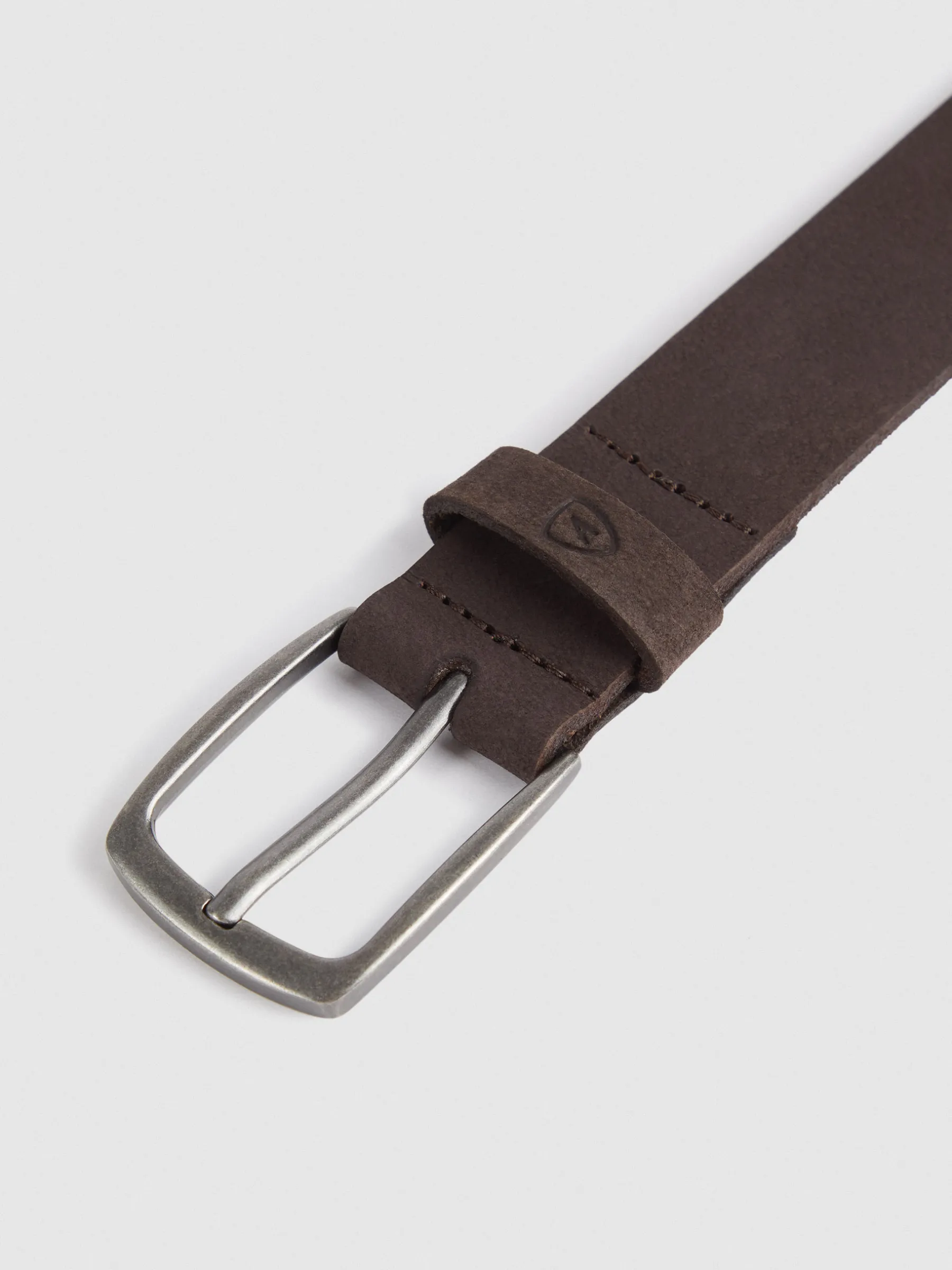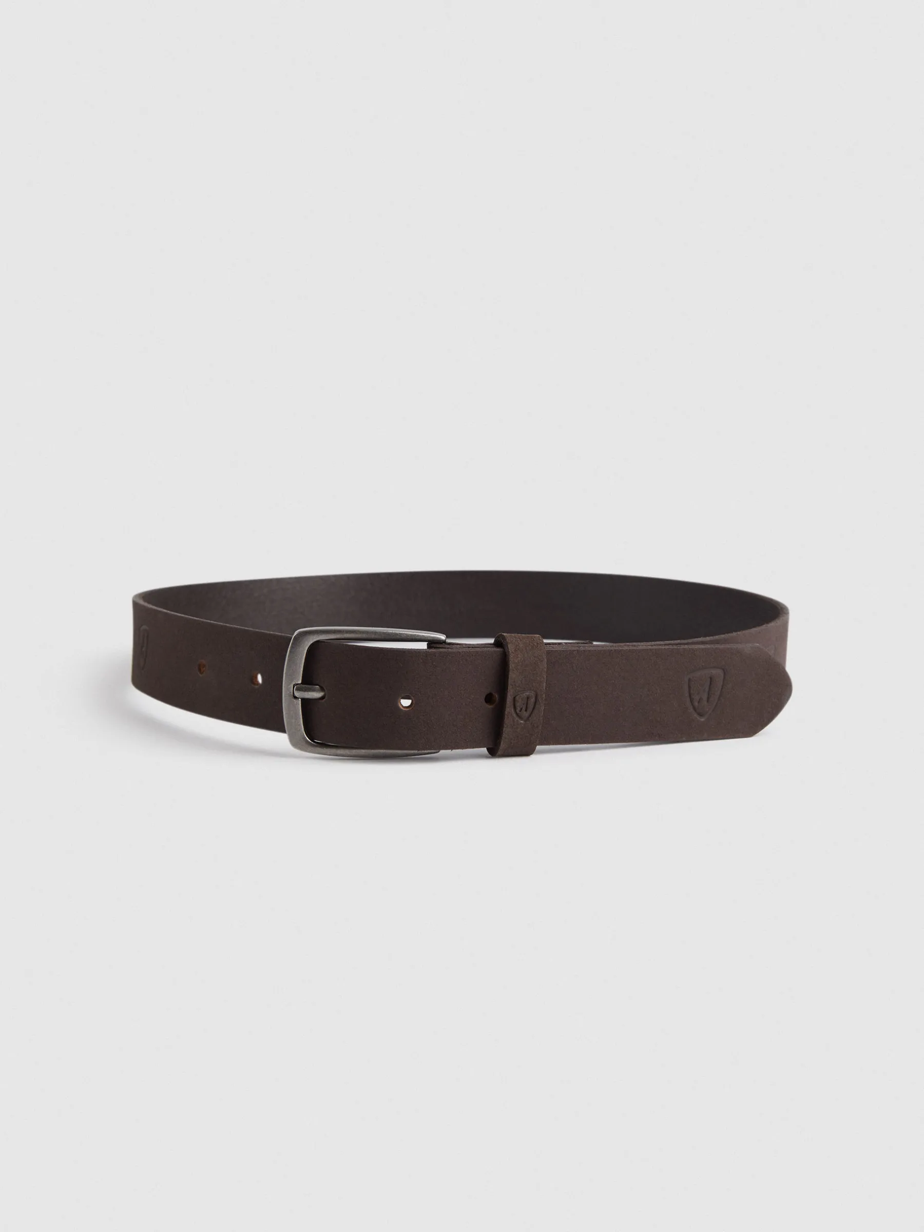 Cinturón con cierre central mediante hebilla metálica, pasador al tono y logo de la marca grabado al tono.