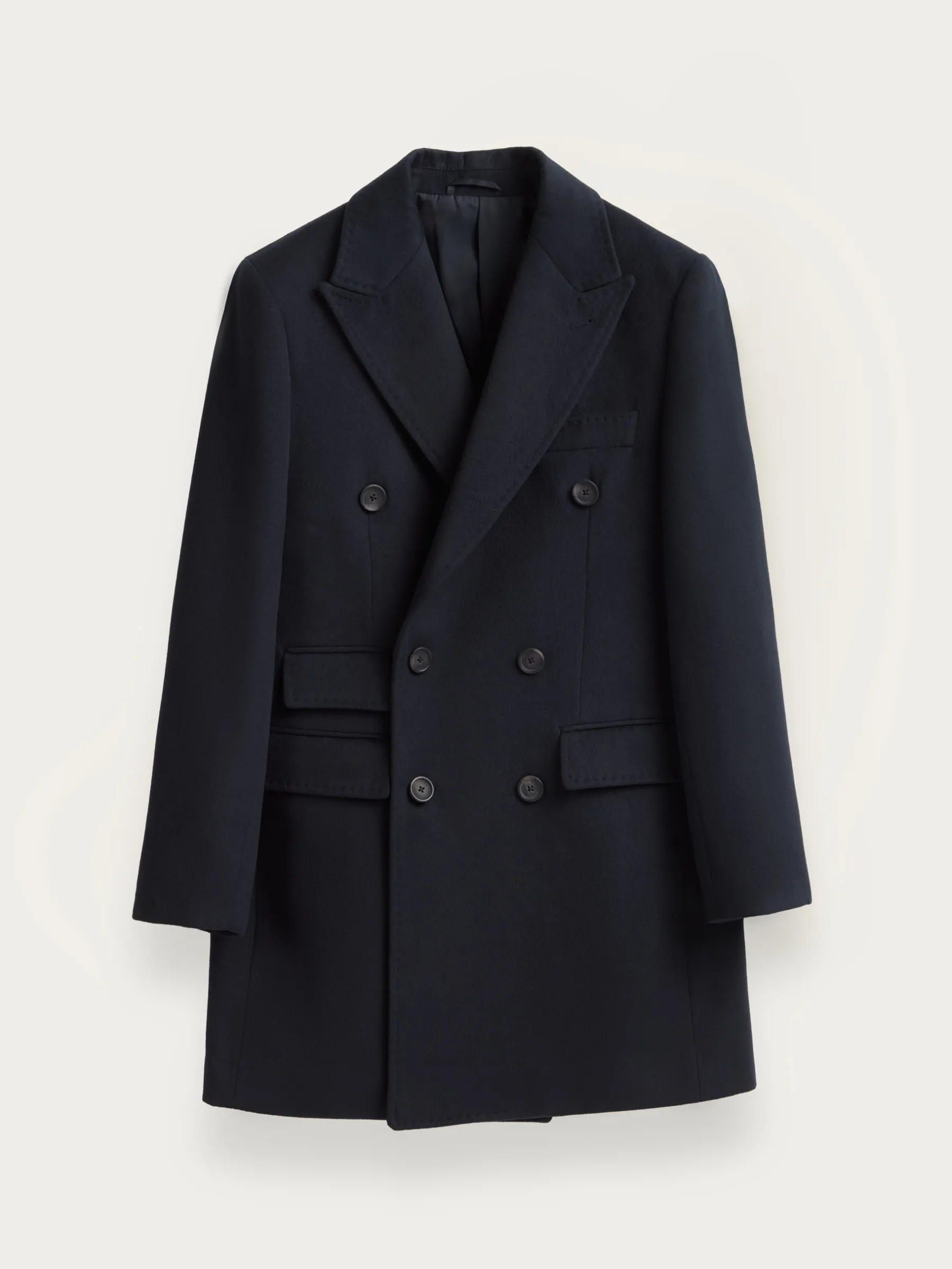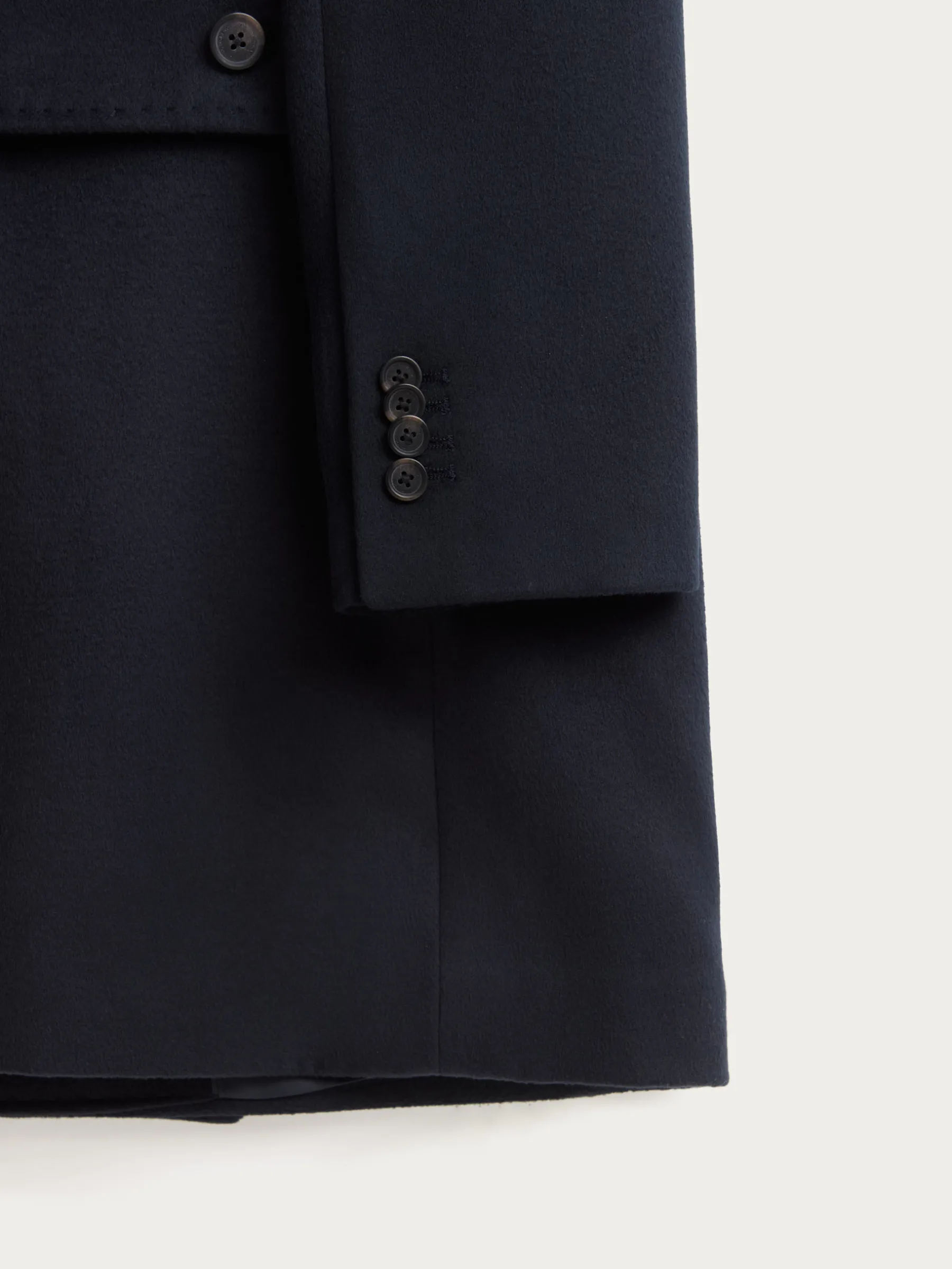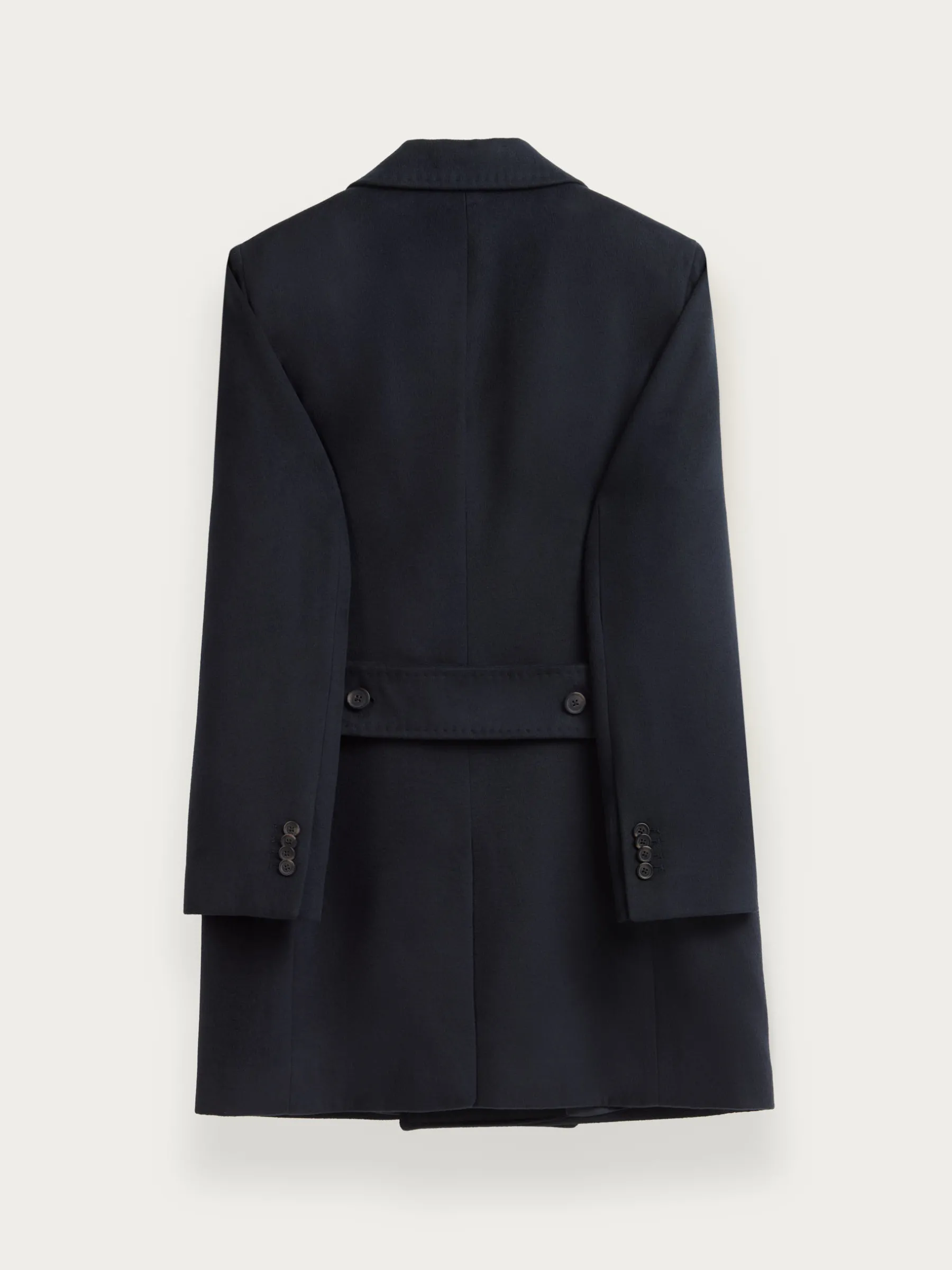 Abrigo largo de corte regular fit que cuenta con cuello y solapa, cierre central cruzado, ajuste martingala en la cintura-espalda, bolsillo de ojal en el pecho y dos bolsillos de parche en la cintura. Pinzas en el frontal y manga con terminación de botones. Abertura en el bajo. Forrado en su interior con dos bolsillos.