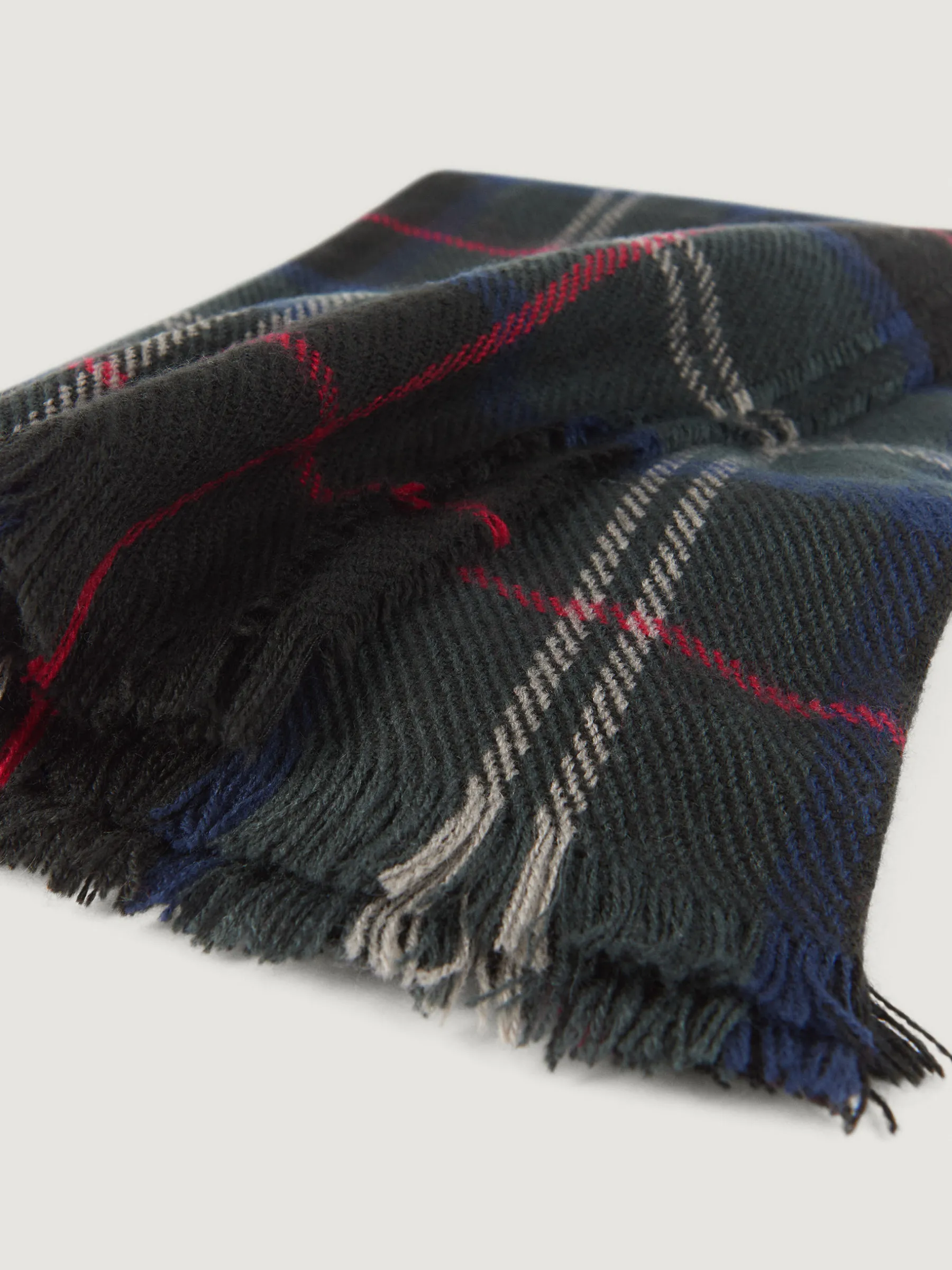 Bufandas con diseño de cuadros confeccionada en 100% acrílico. Terminación de flecos decorativos y tacto suave.