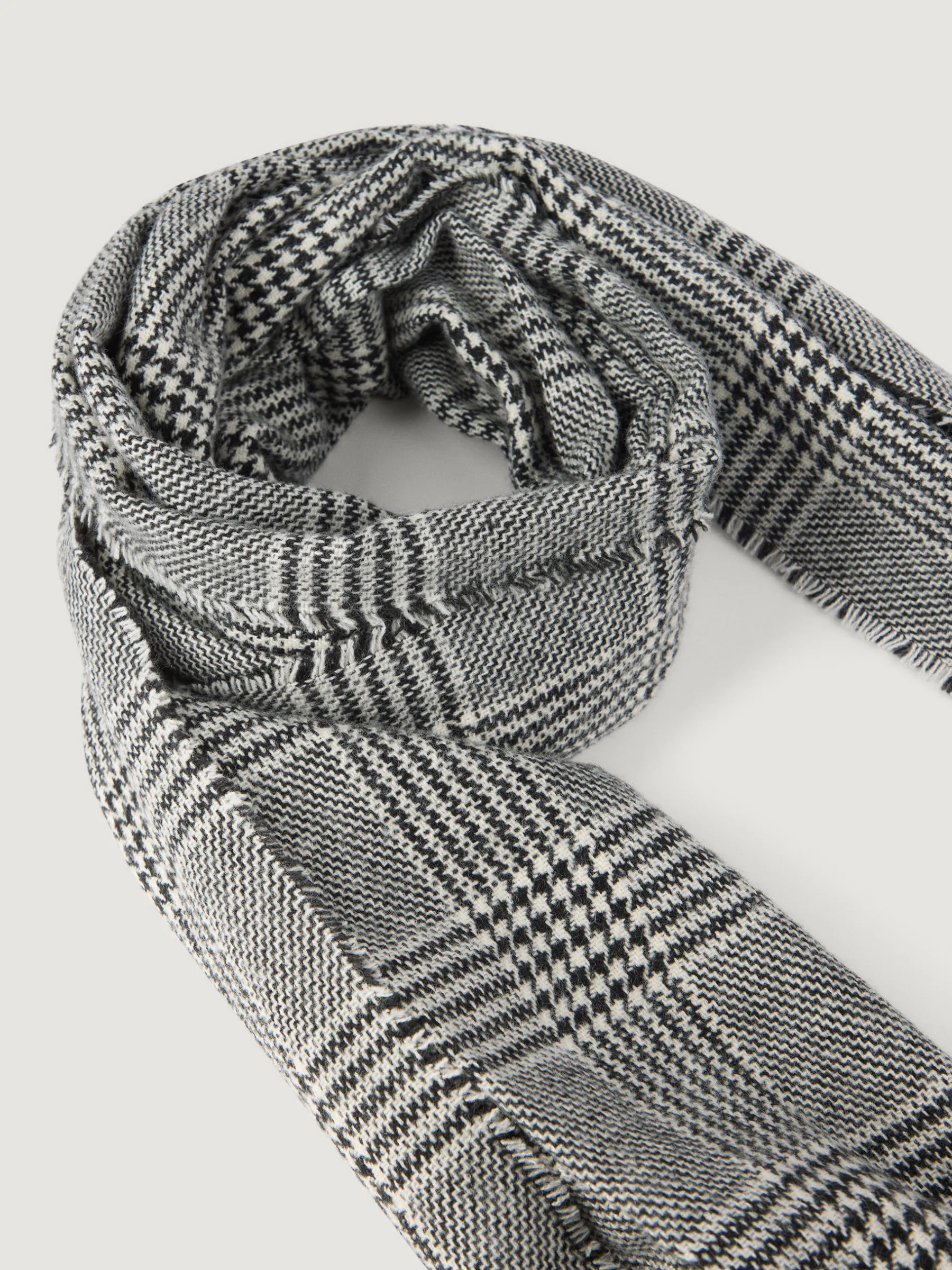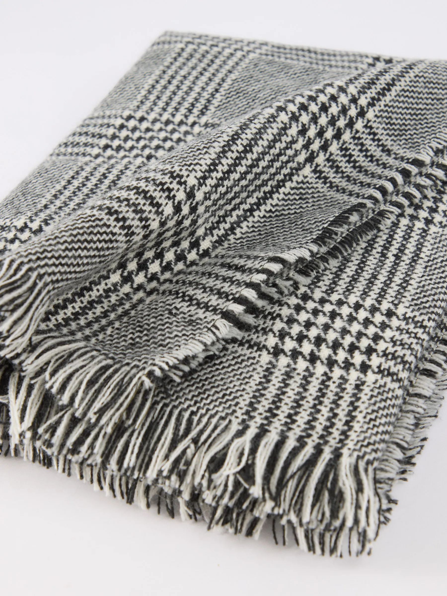 Bufandas con diseño de cuadros confeccionada en 100% acrílico. Terminación de flecos decorativos y tacto suave.