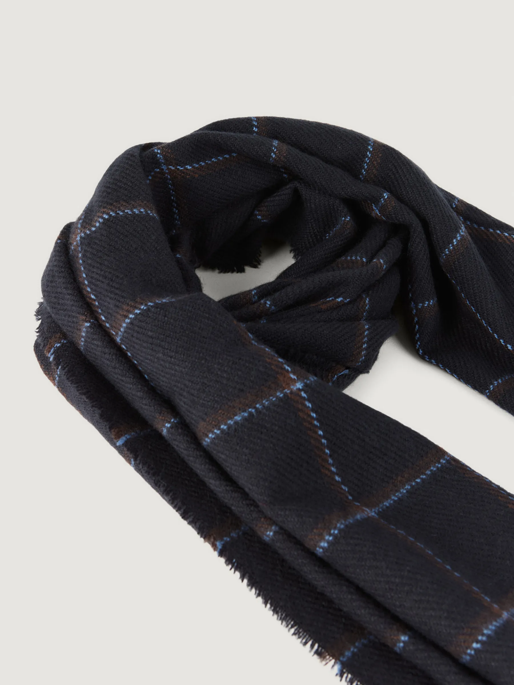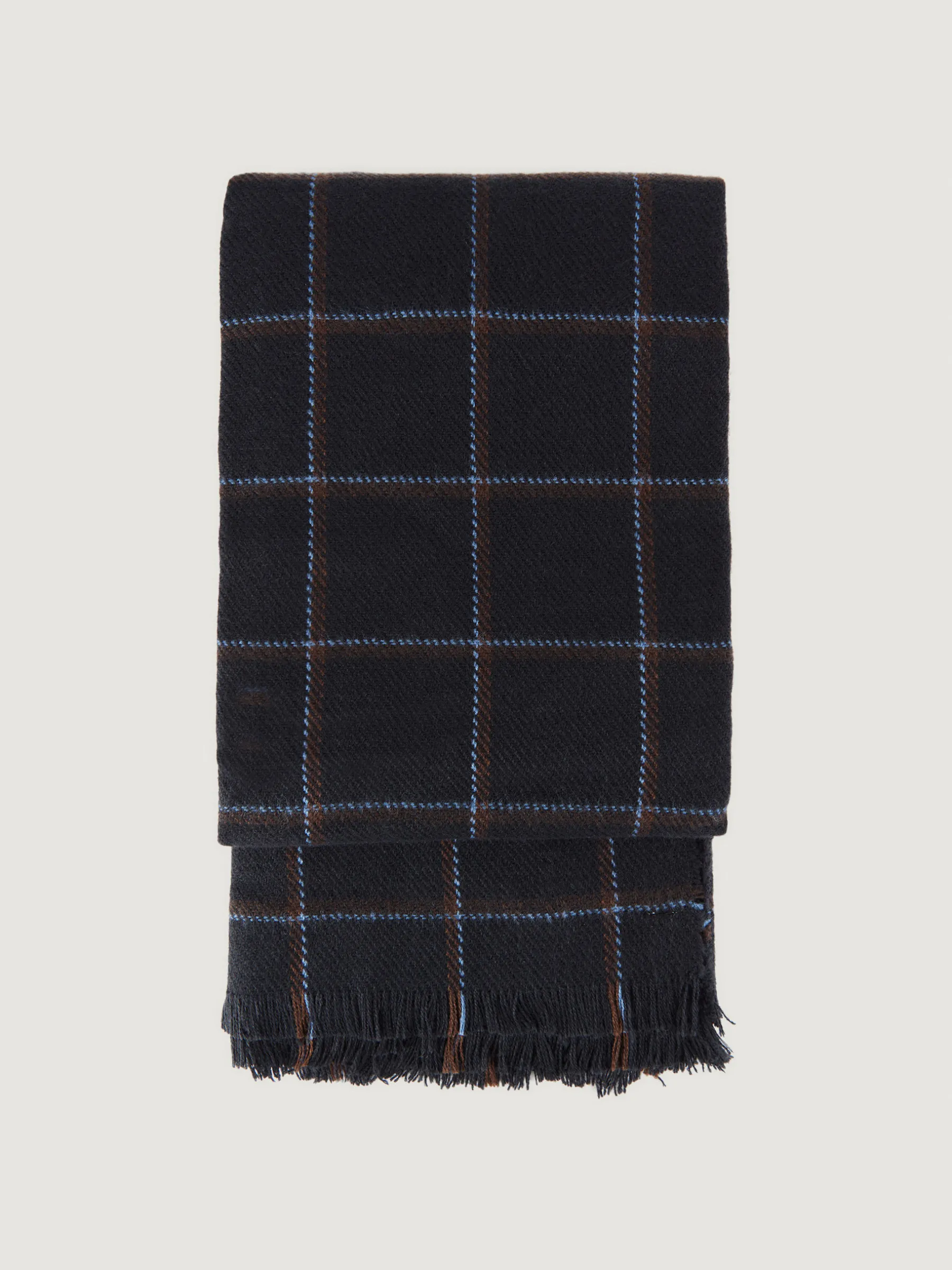 Bufandas con diseño de cuadros confeccionada en 100% acrílico. Terminación de flecos decorativos y tacto suave.