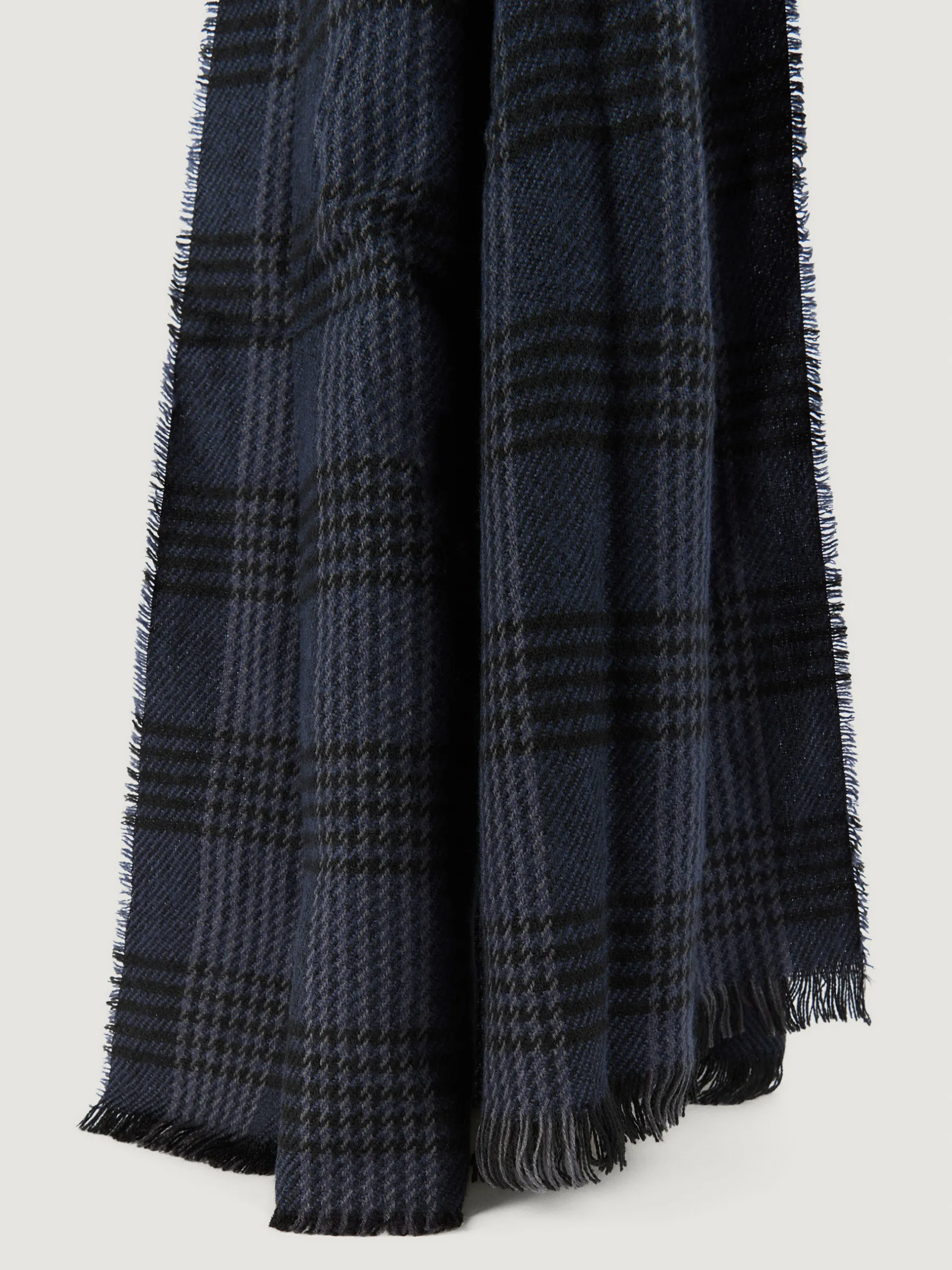 Bufandas con diseño de cuadros confeccionada en 100% acrílico. Terminación de flecos decorativos y tacto suave.