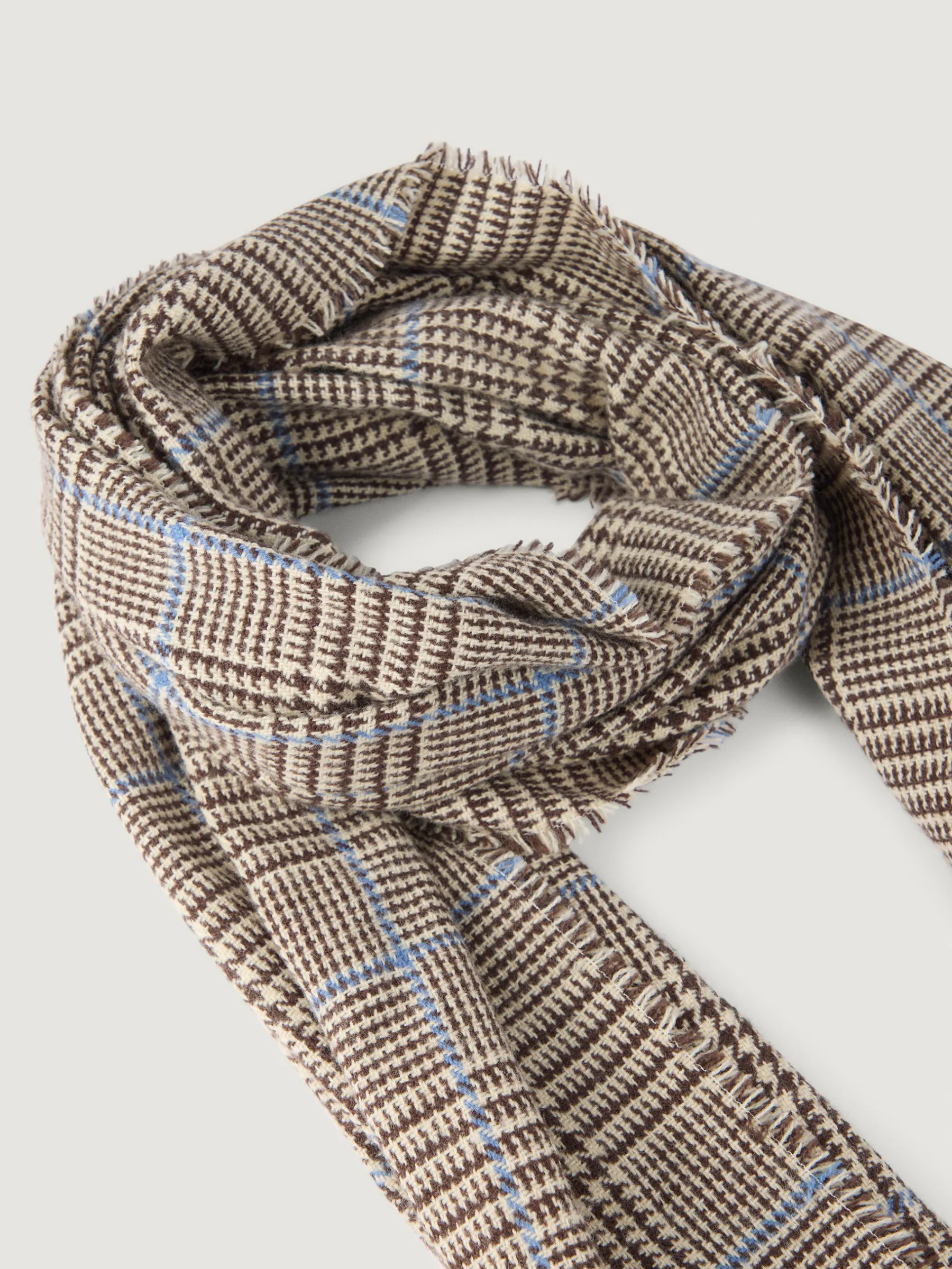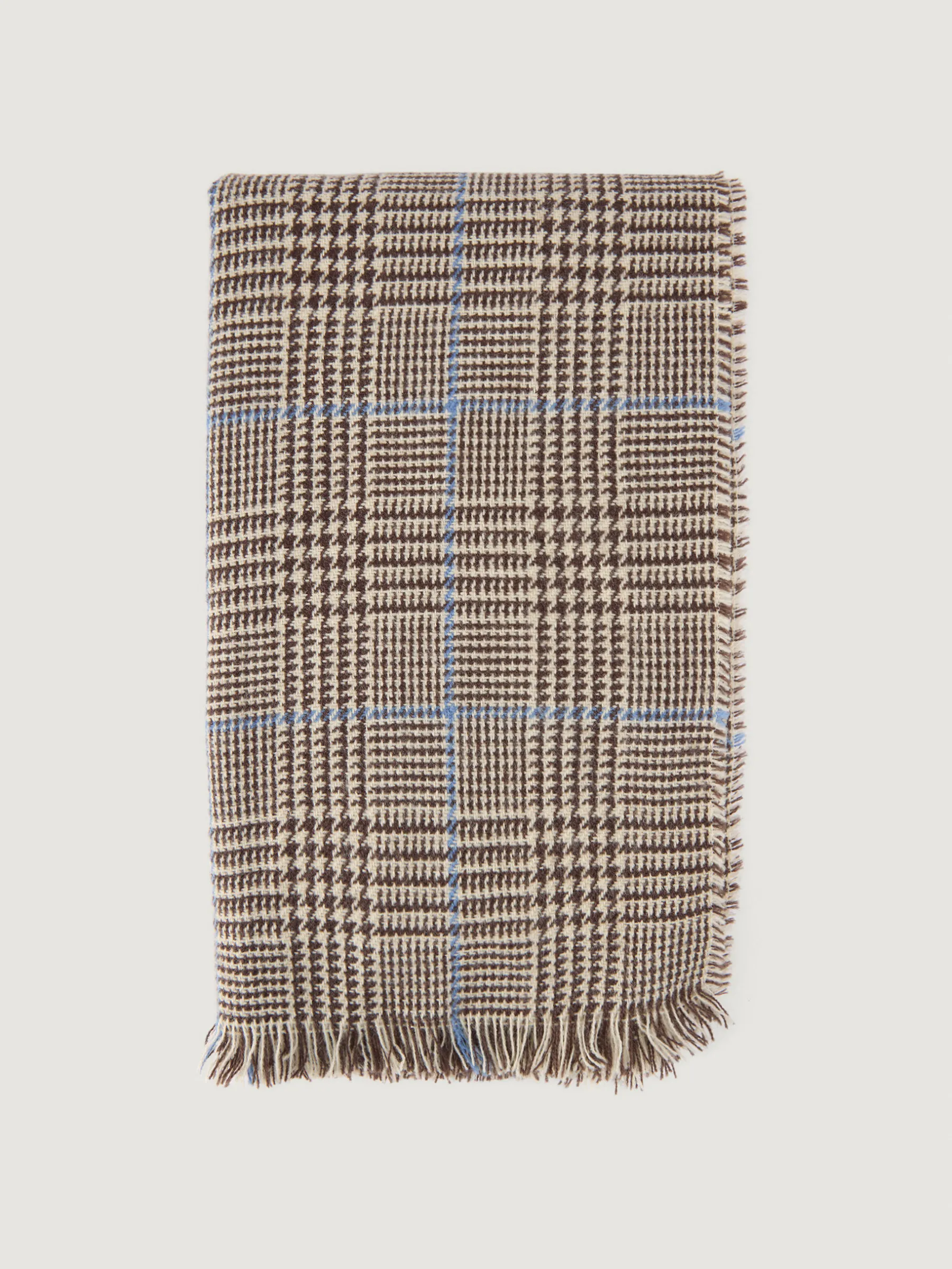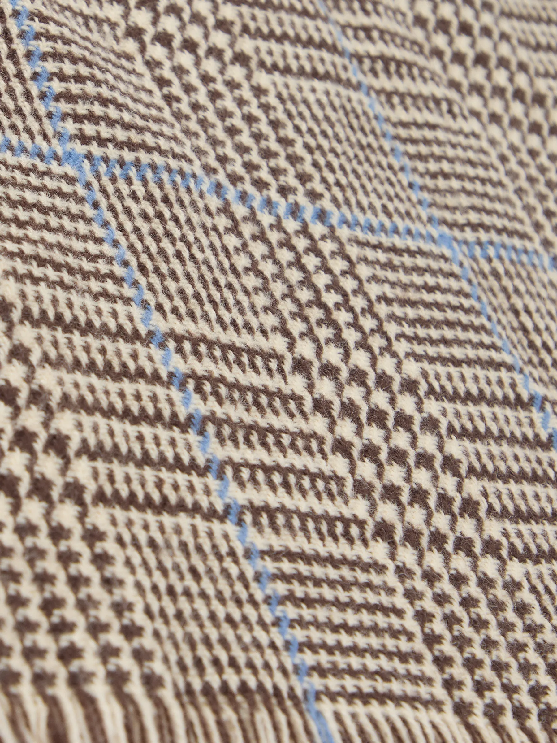 Bufandas con diseño de cuadros confeccionada en 100% acrílico. Terminación de flecos decorativos y tacto suave.