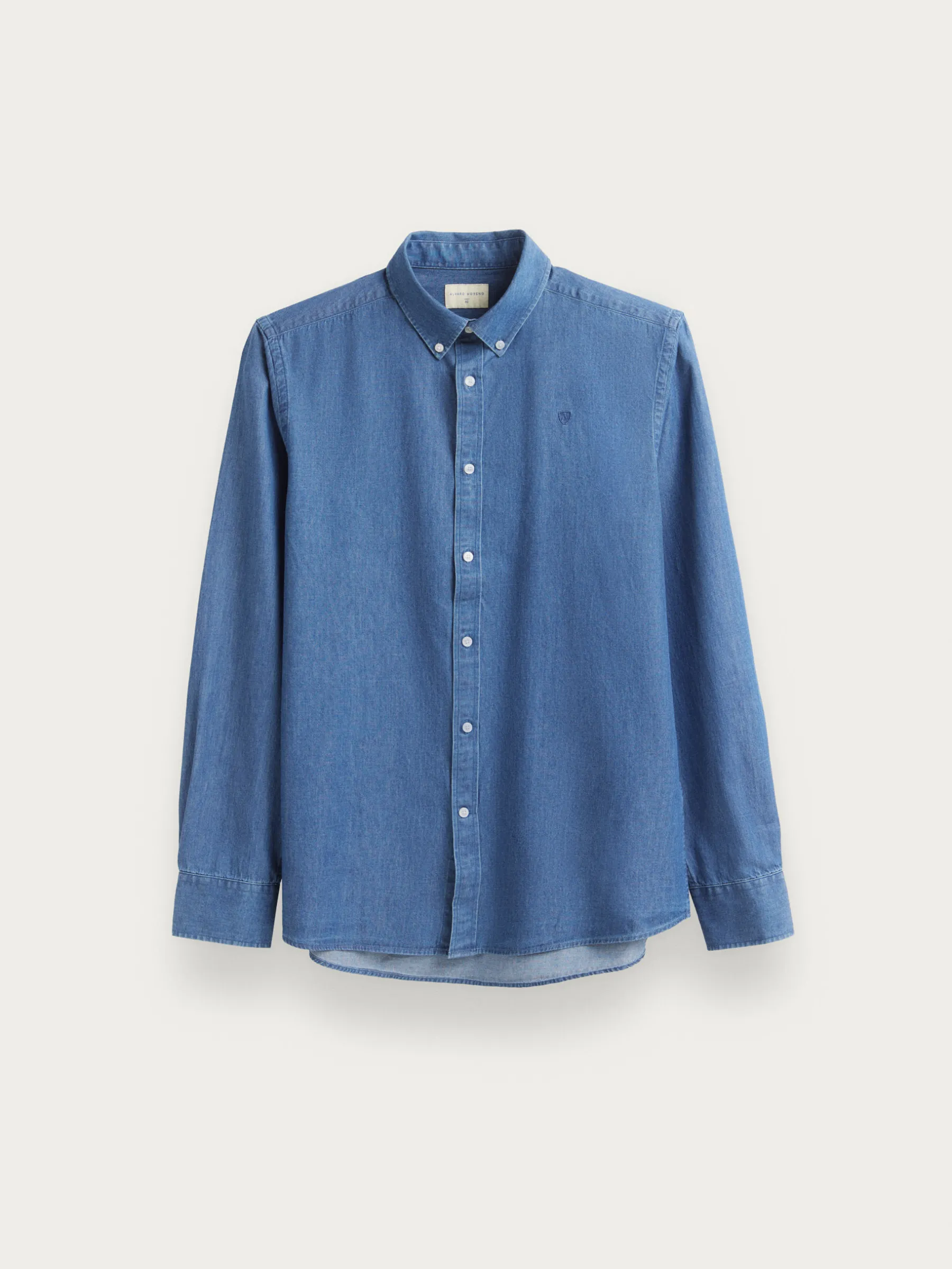 Camisa estilo denim confeccionada en algodón. Cuenta con cuello clásico de botón, manga larga con puños simples y logo de la marca grabado en el frontal al tono. Corte regular fit.