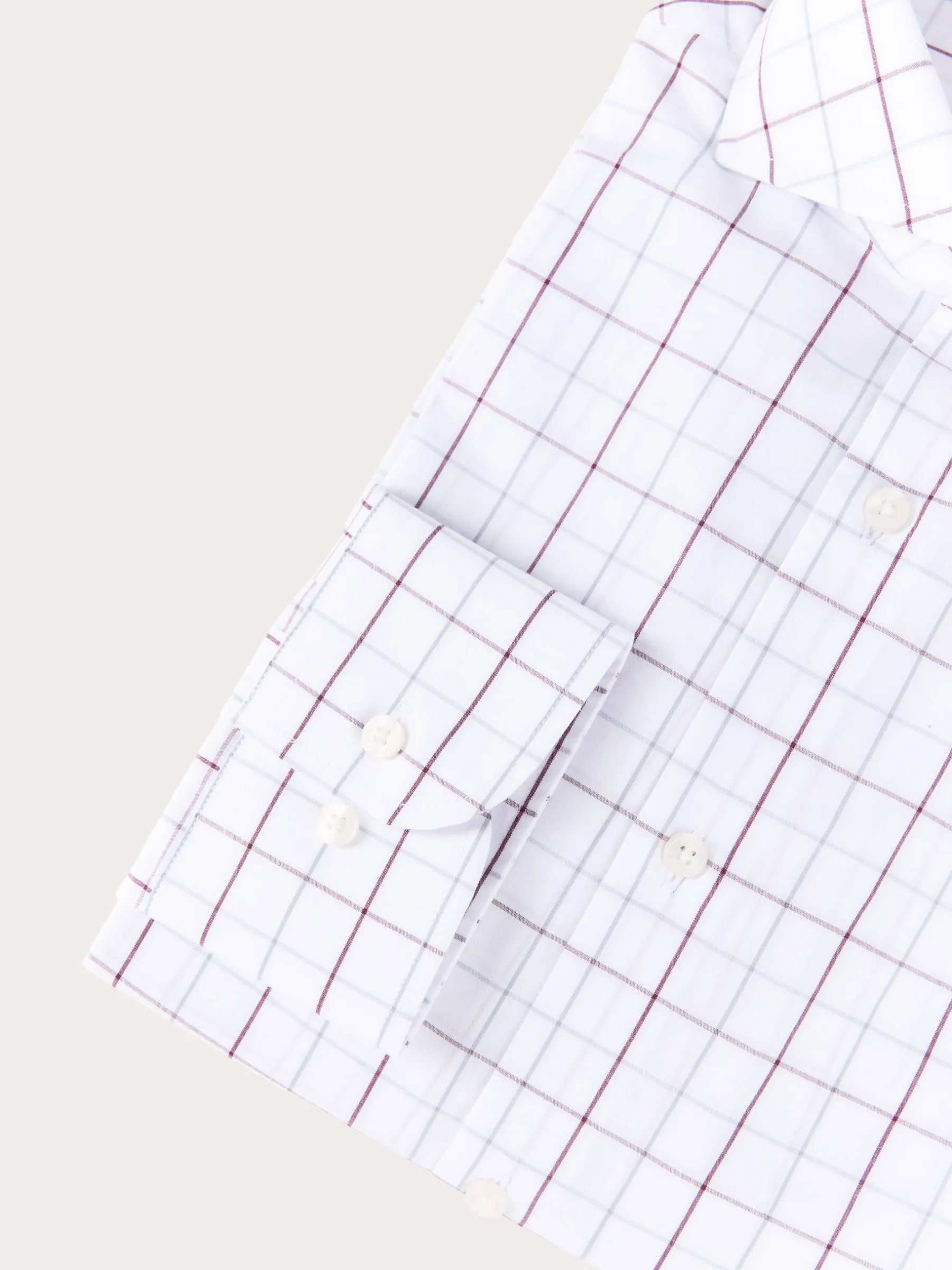 Camisa a cuadros confeccionada en algodón con cuello de italiano, manga larga con puños simples y logo de la marca grabado en el frontal. Corte regular fit.