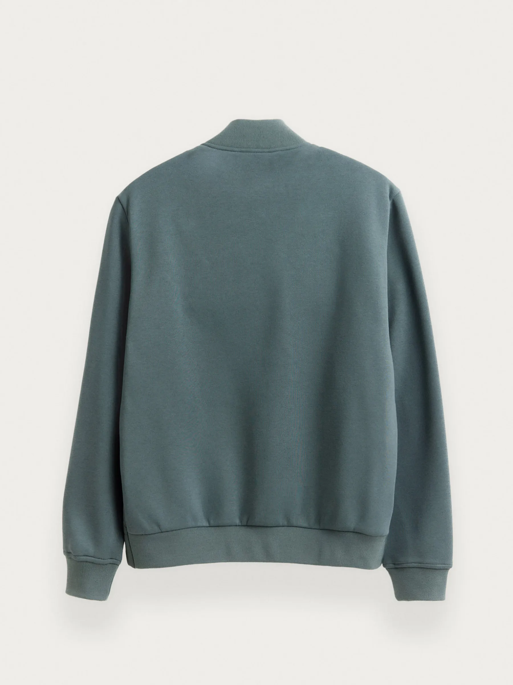 Cazadora estilo bomber con cuello y mangas en tejido de punto. Cuenta en su parte delantera con cierre central mediante cremallera, dos bolsillos y parche con el logo de la marca grabado en el pecho.