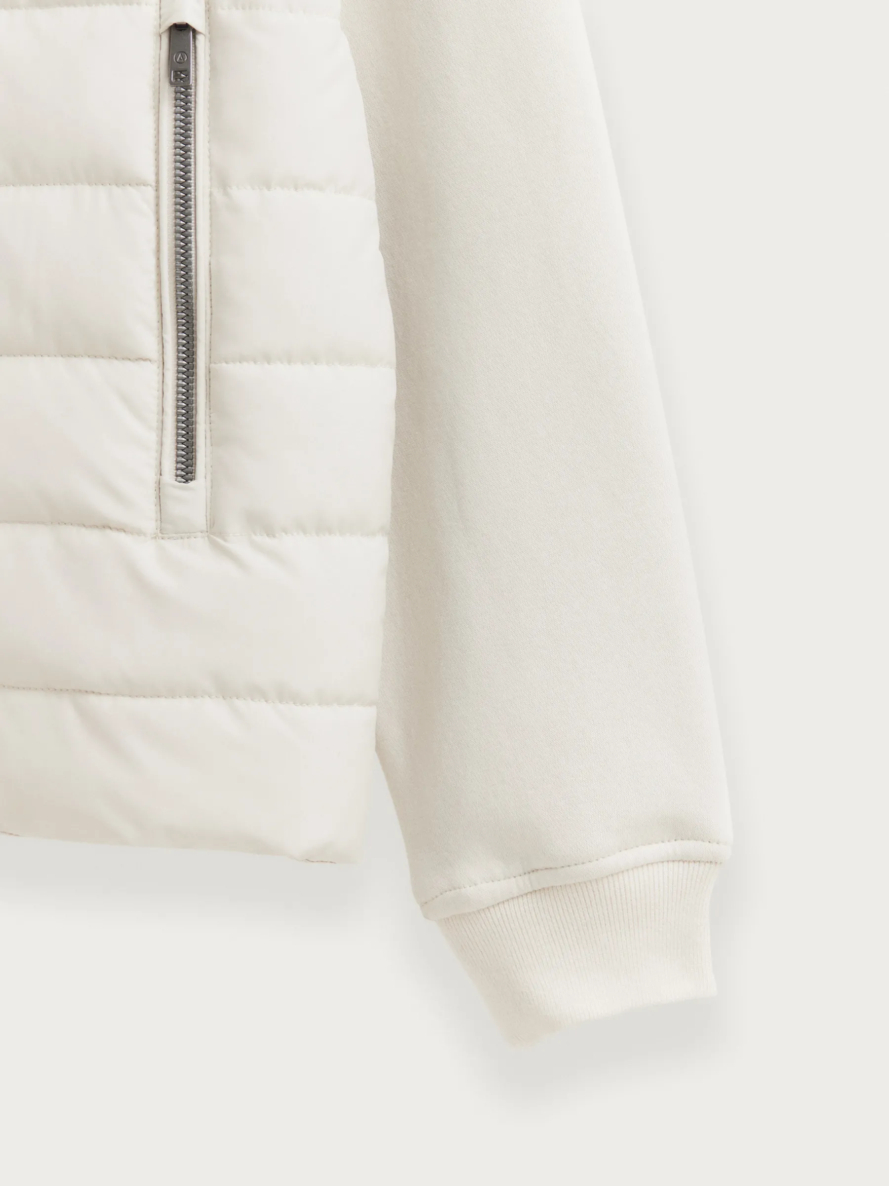Cazadora estilo bomber con cuello y mangas en tejido de punto. Cuenta en su parte delantera con cierre central mediante cremallera, dos bolsillos y parche con el logo de la marca grabado en el pecho.