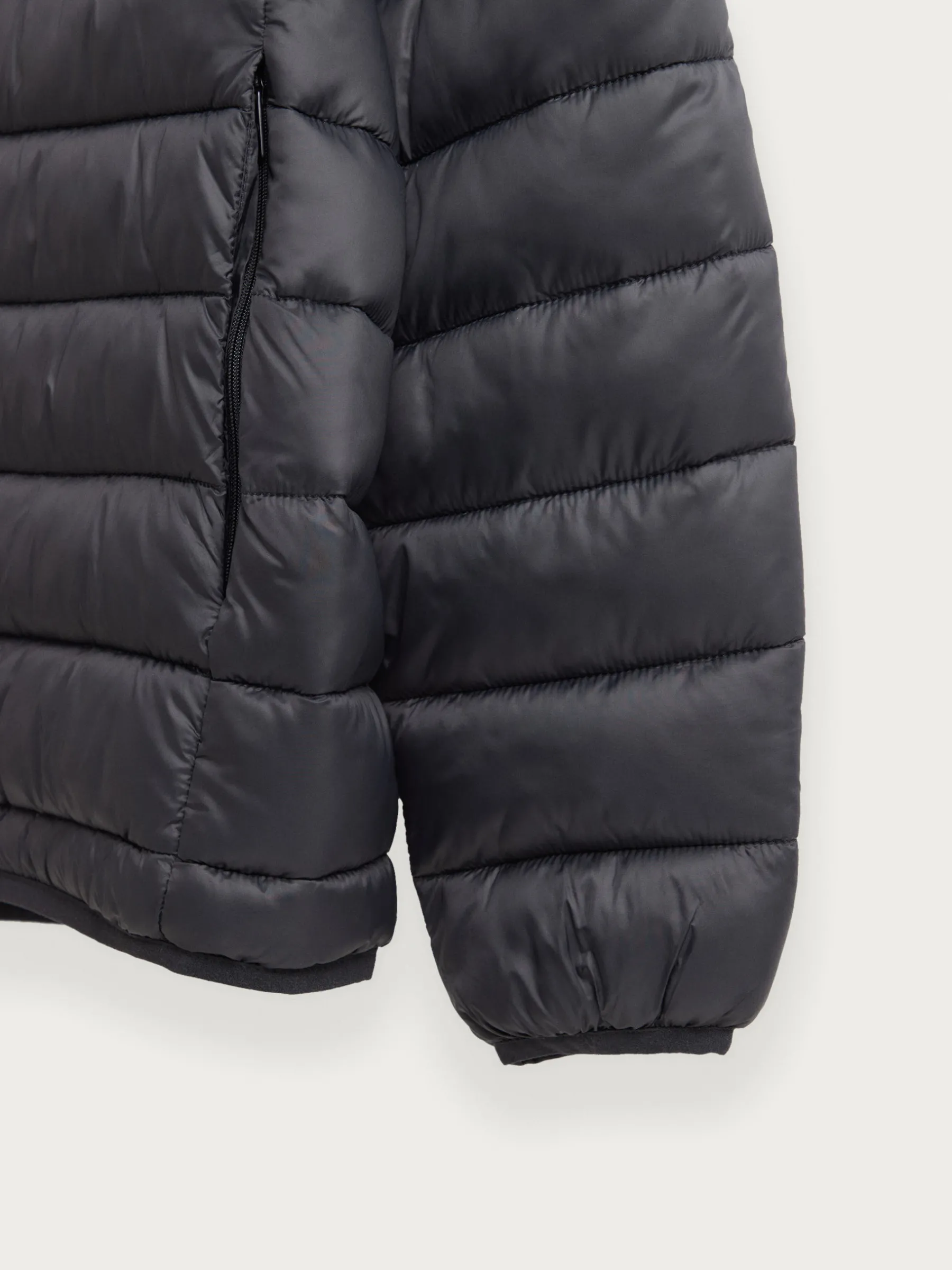 Cazadora acolchada con cuello subido. Cuenta con cierre central mediante cremallera, manga larga con puños elásticos y logo de la marca grabado en el frontal al tono. Bolsillo en el interior.