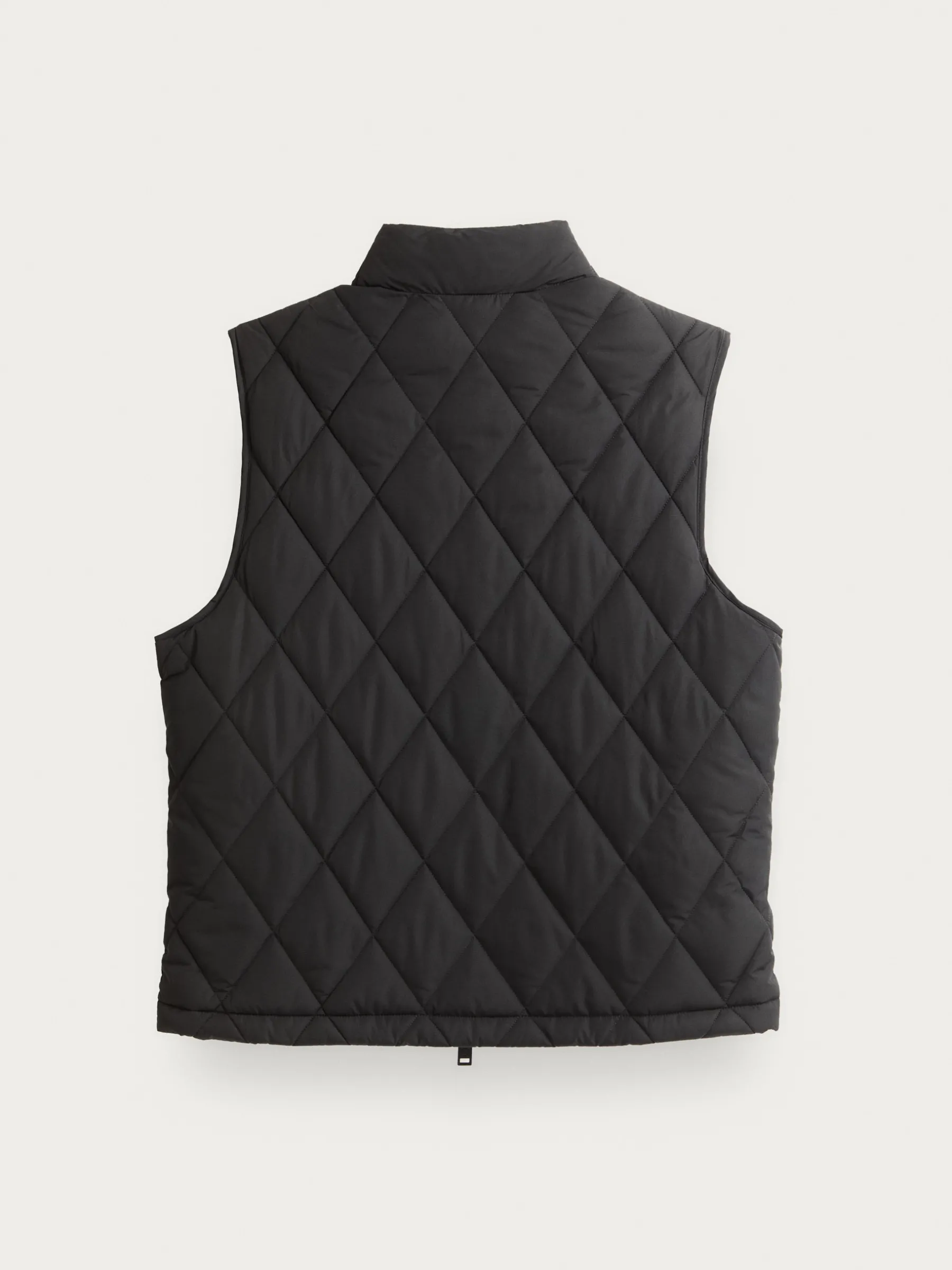 Chaleco con cuello alto y tejido en forma de rombos. Cuenta con cierre central mediante doble cremallera oculta por tapeta de botones a presión, logo de la marca grabado al tono en el frontal y dos bolsillos a la altura de la cintura. Corte regular fit.