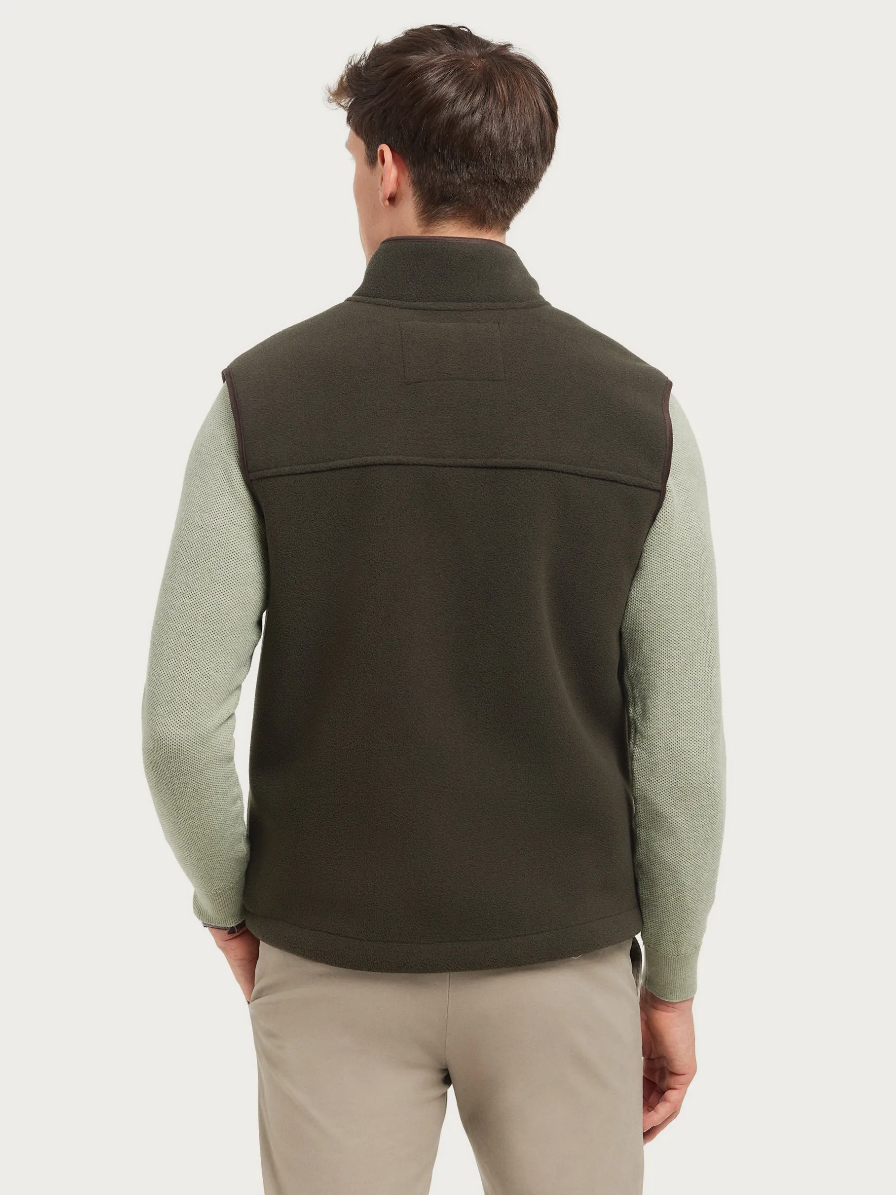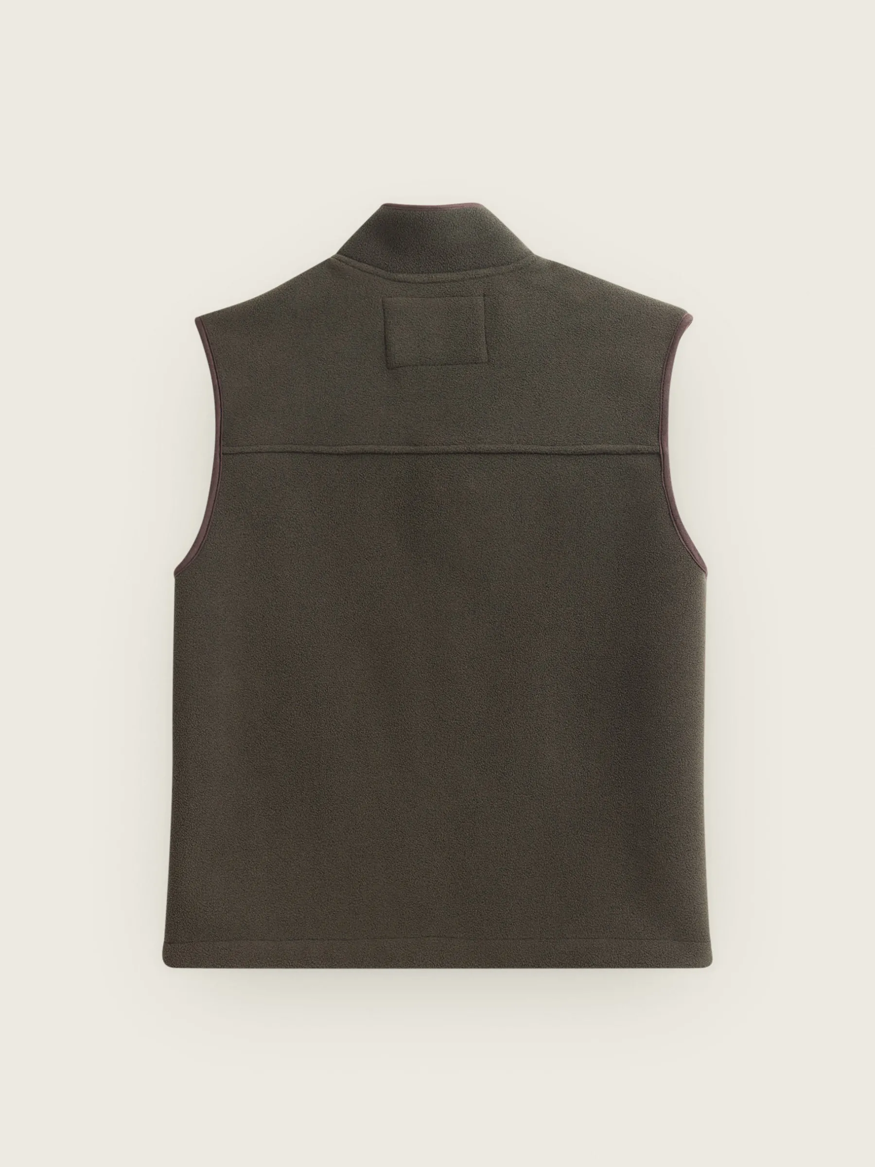 Chaleco confeccionado en tejido avivado en antelina en su exterior y forrado en su interior en borreguillo. Cuenta con cierre central mediante cremallera personalizada, dos bolsillos en su exterior y logo grabado en su frontal. Corte regular fit.