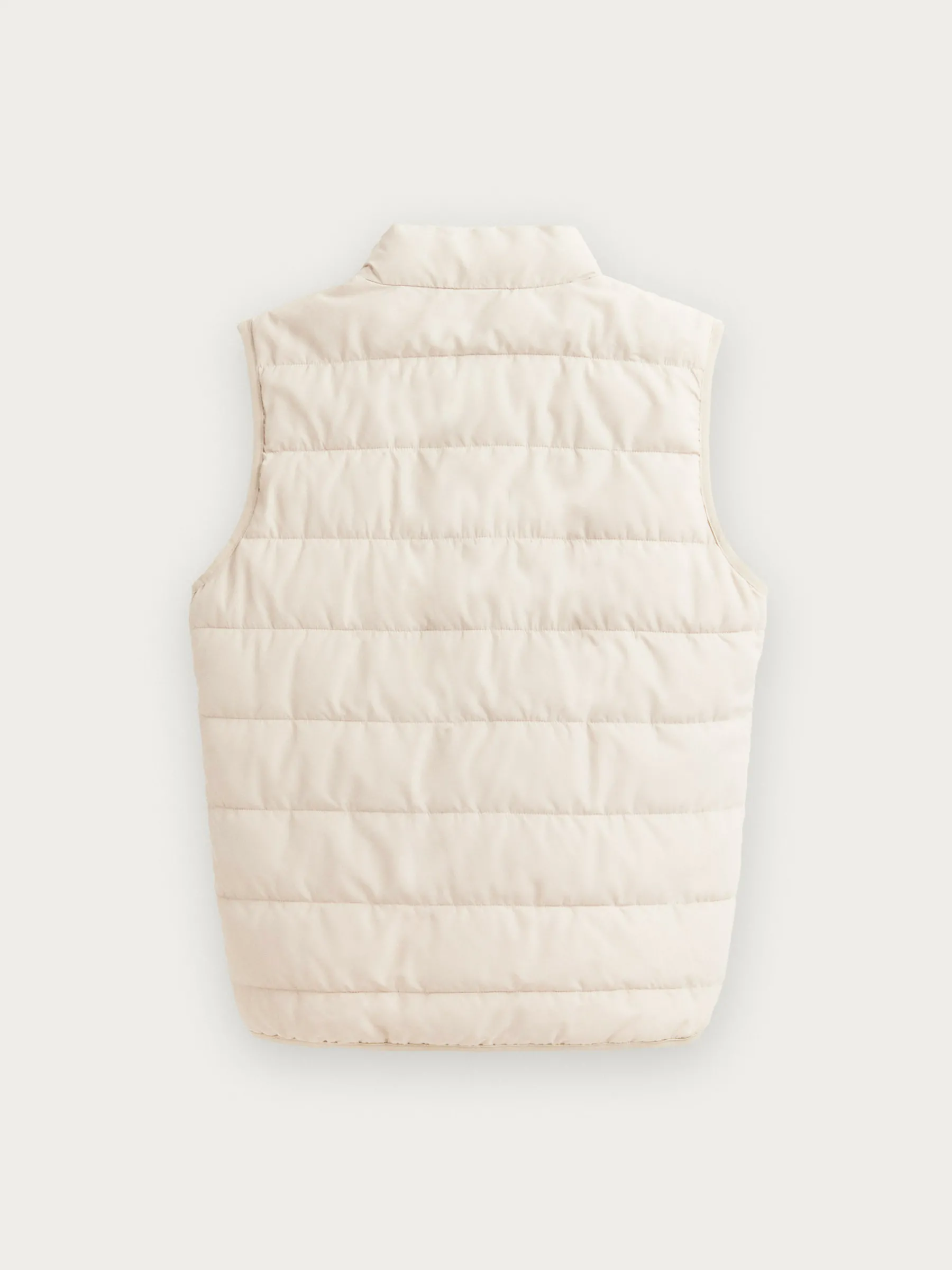 Chaleco acolchado con cuello subido y cierre central mediante doble cremallera, dos bolsillos a la altura de la cintura con cierre de cremallera y logo de la marca grabado en el frontal al tono. Elástico en la sisa y cintura. Cremalleras termoselladas. Interior con dos bolsillos y doble compartimento cada uno.