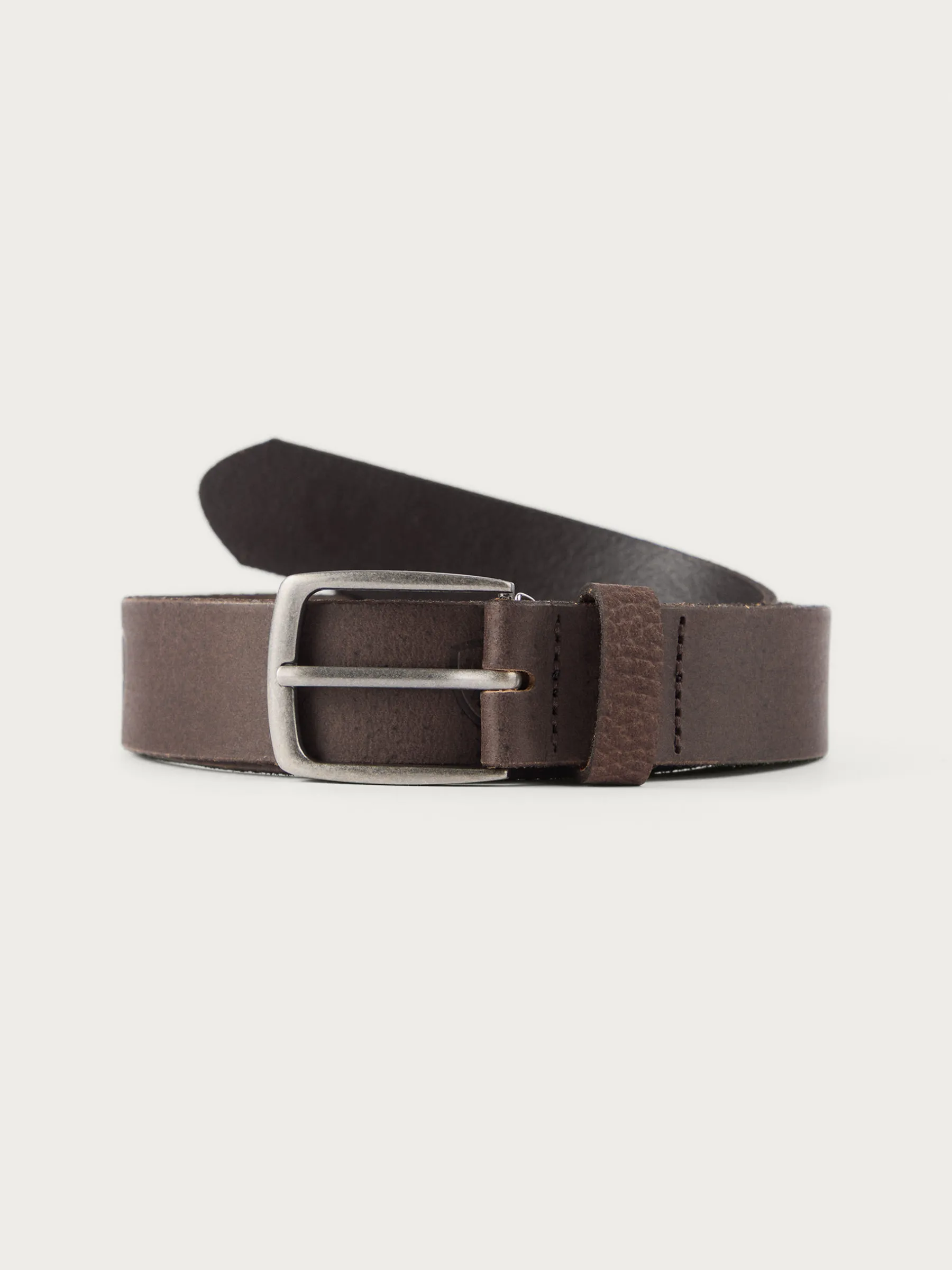 Cinturón confeccionado en piel con cierre central mediante hebilla metálica, pasador al tono y logo de la marca grabado al tono.