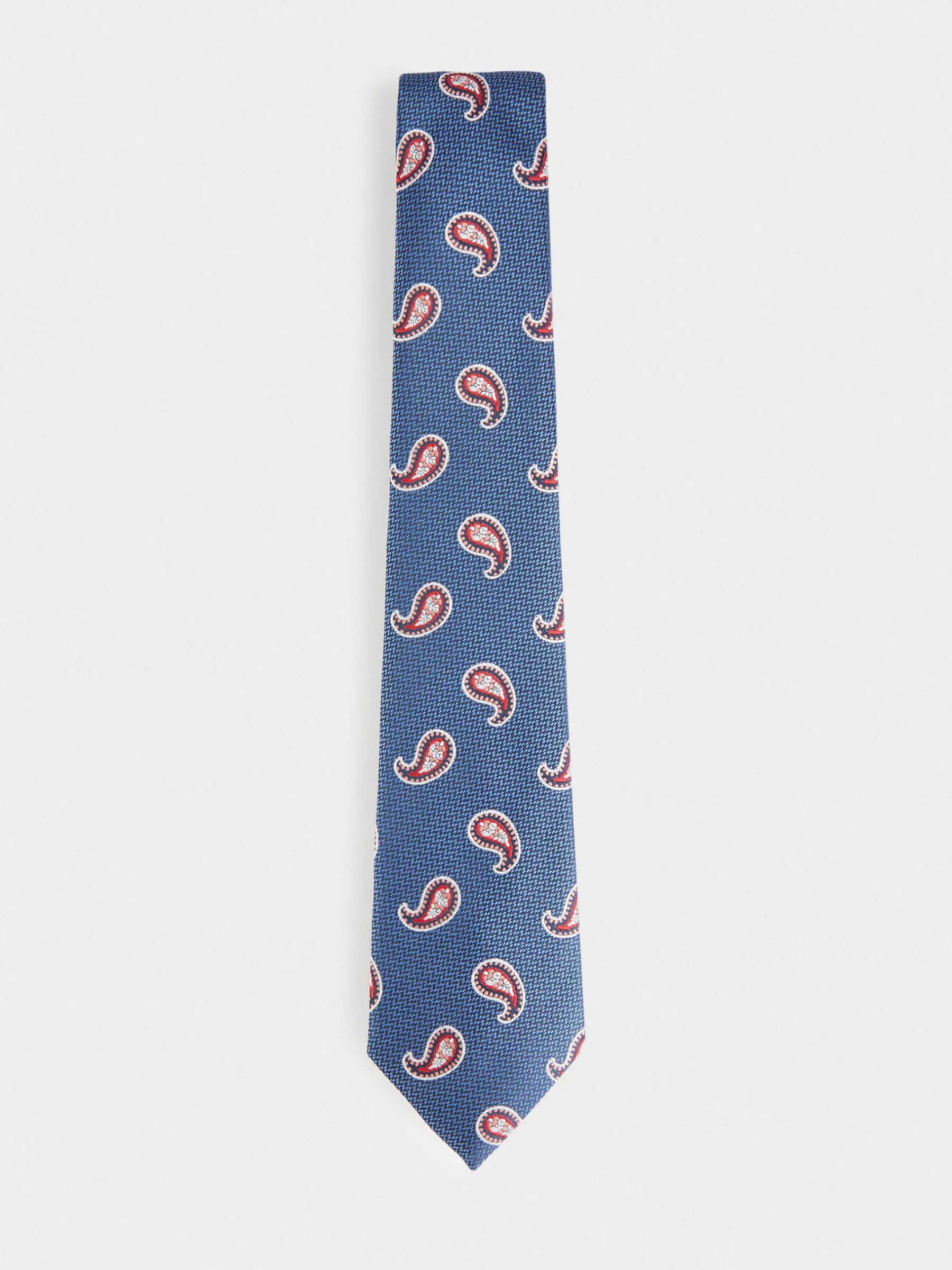 Corbata estilo jacquard con diseño estampado a contraste confeccionada en 100% poliéster. Cuenta con el logo de la marca grabado en el interior.