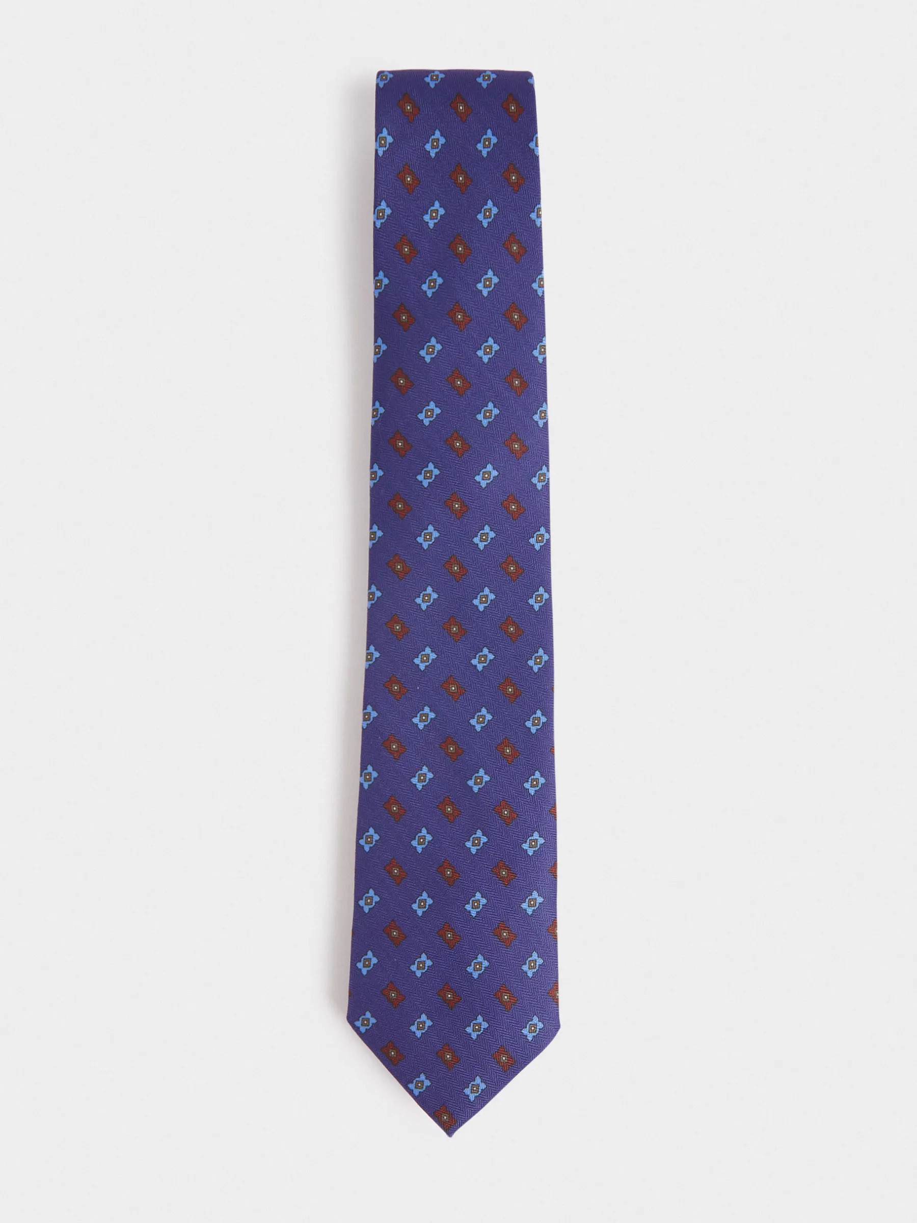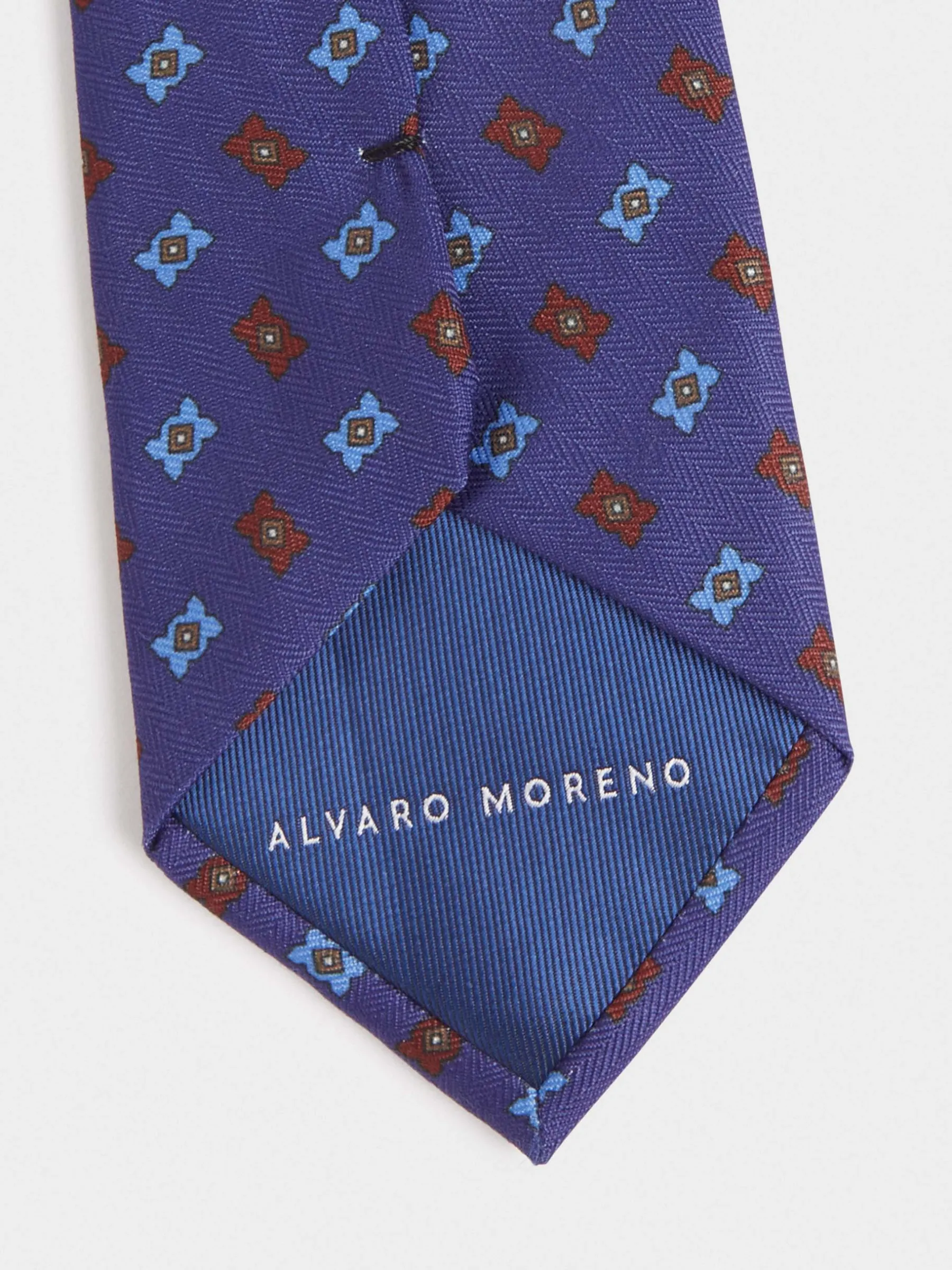 Corbata con diseño estampado personalizado confeccionada en 100% poliéster. Cuenta con el logo de la marca grabado en el interior.