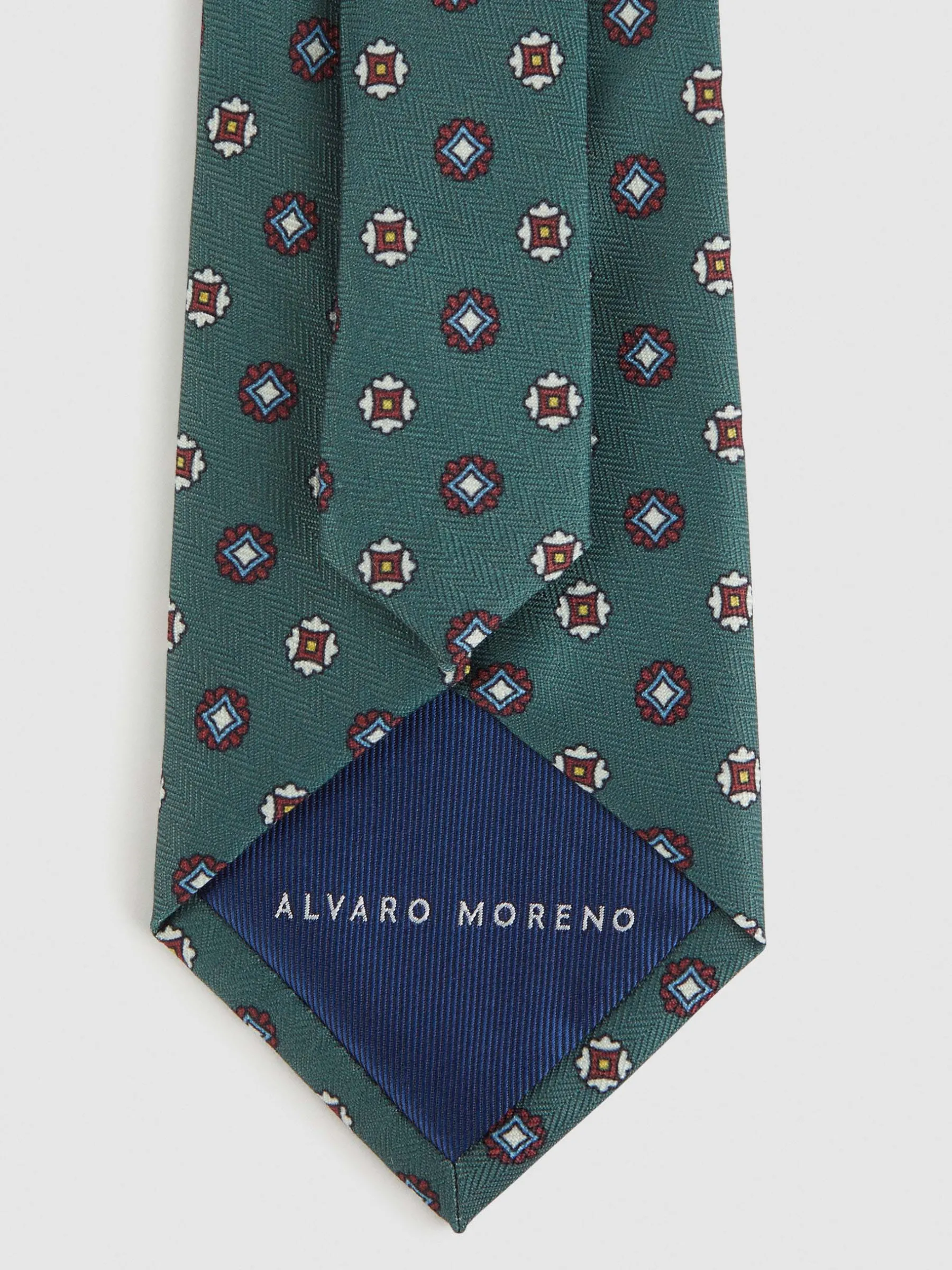 Corbata con diseño estampado personalizado confeccionada en 100% poliéster. Cuenta con el logo de la marca grabado en el interior.