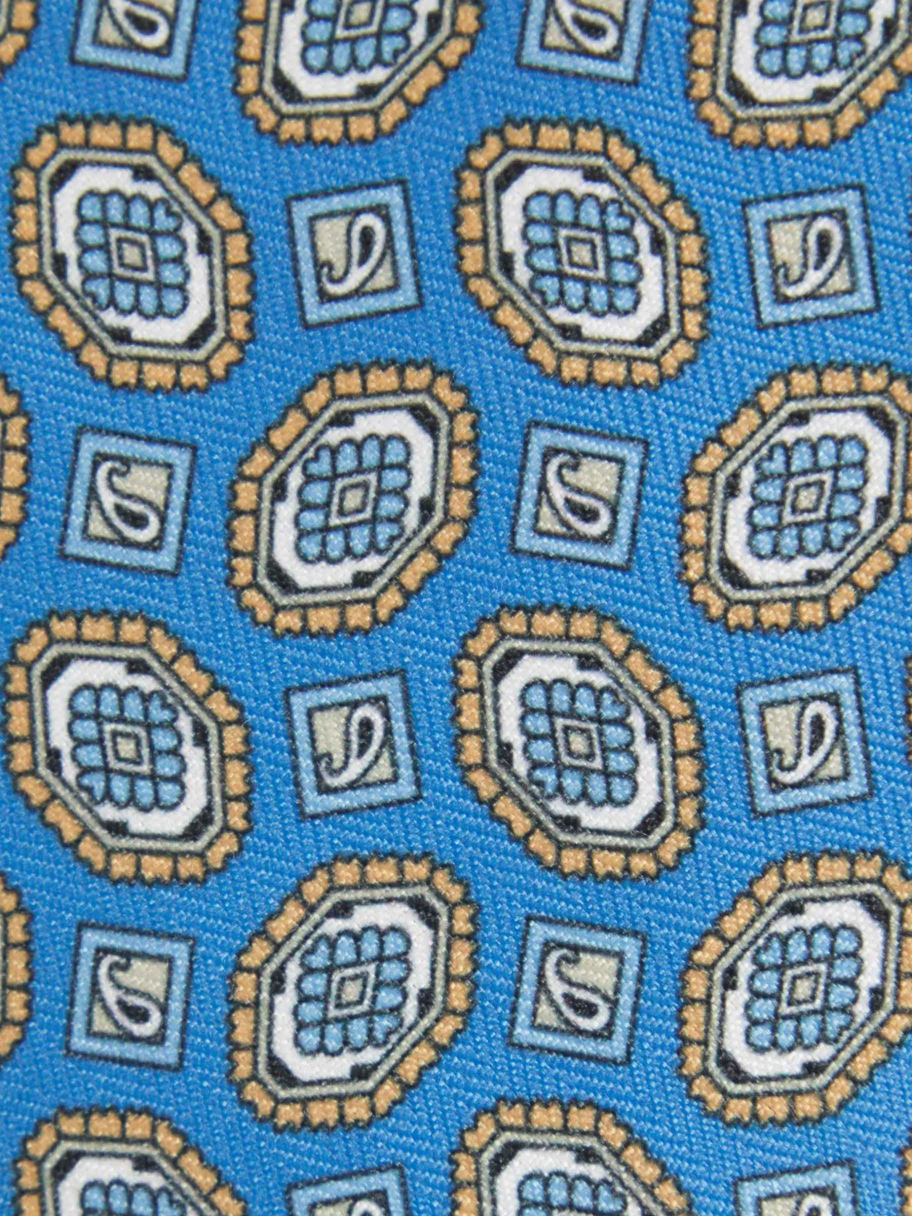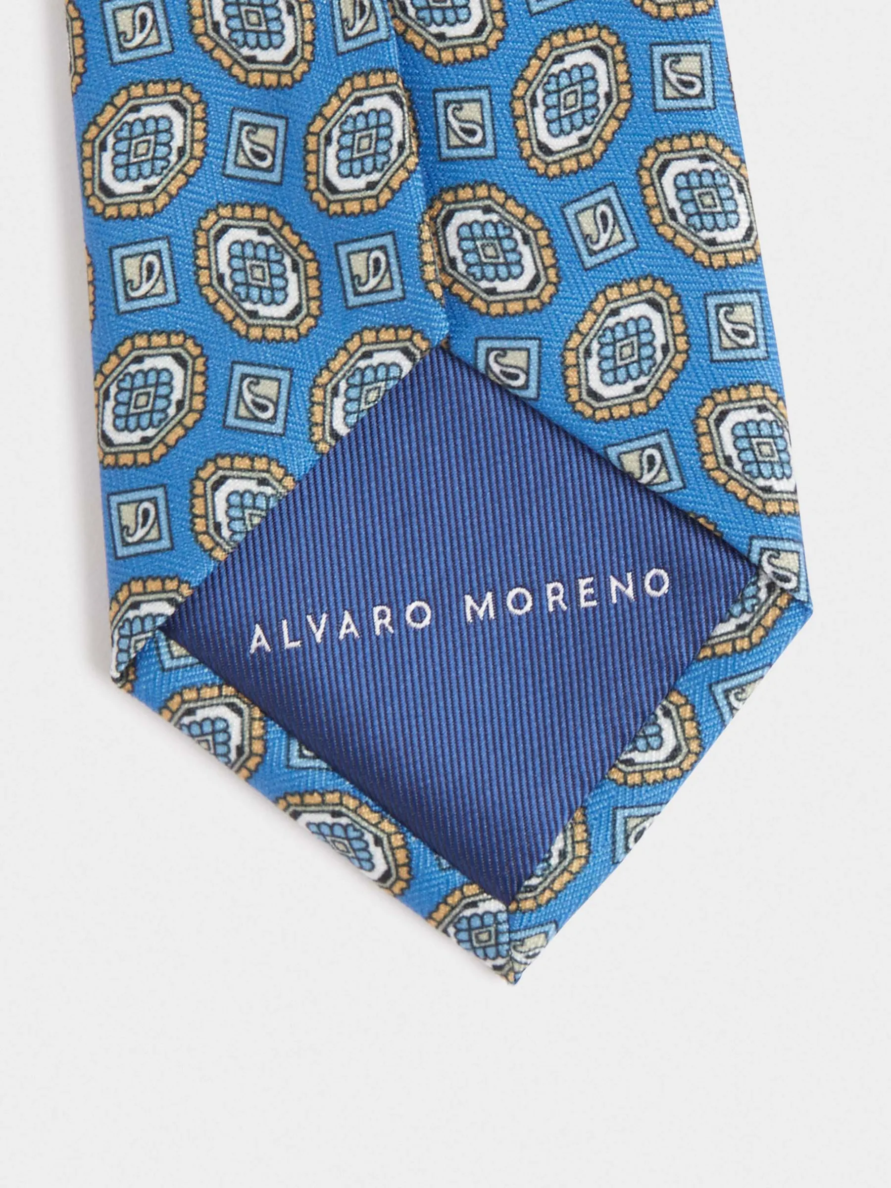 Corbata con diseño estampado personalizado confeccionada en 100% poliéster. Cuenta con el logo de la marca grabado en el interior.