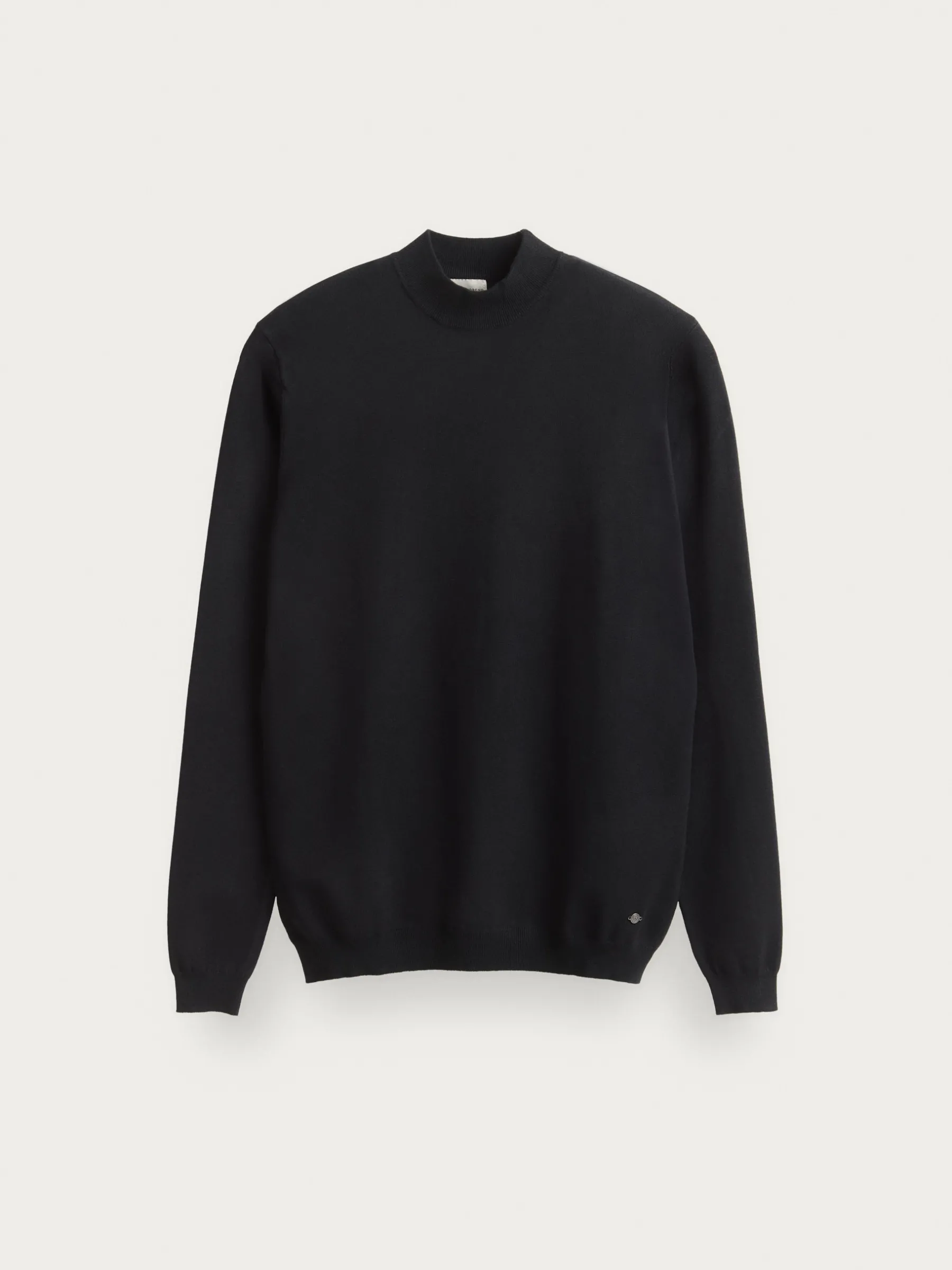 Jersey con cuello perkins y manga larga. Esta prenda de fina estructura, cuenta con detalle personalizado con el logo de la marca en el bajo y con sus puños, cintura y cuello ribeteados.