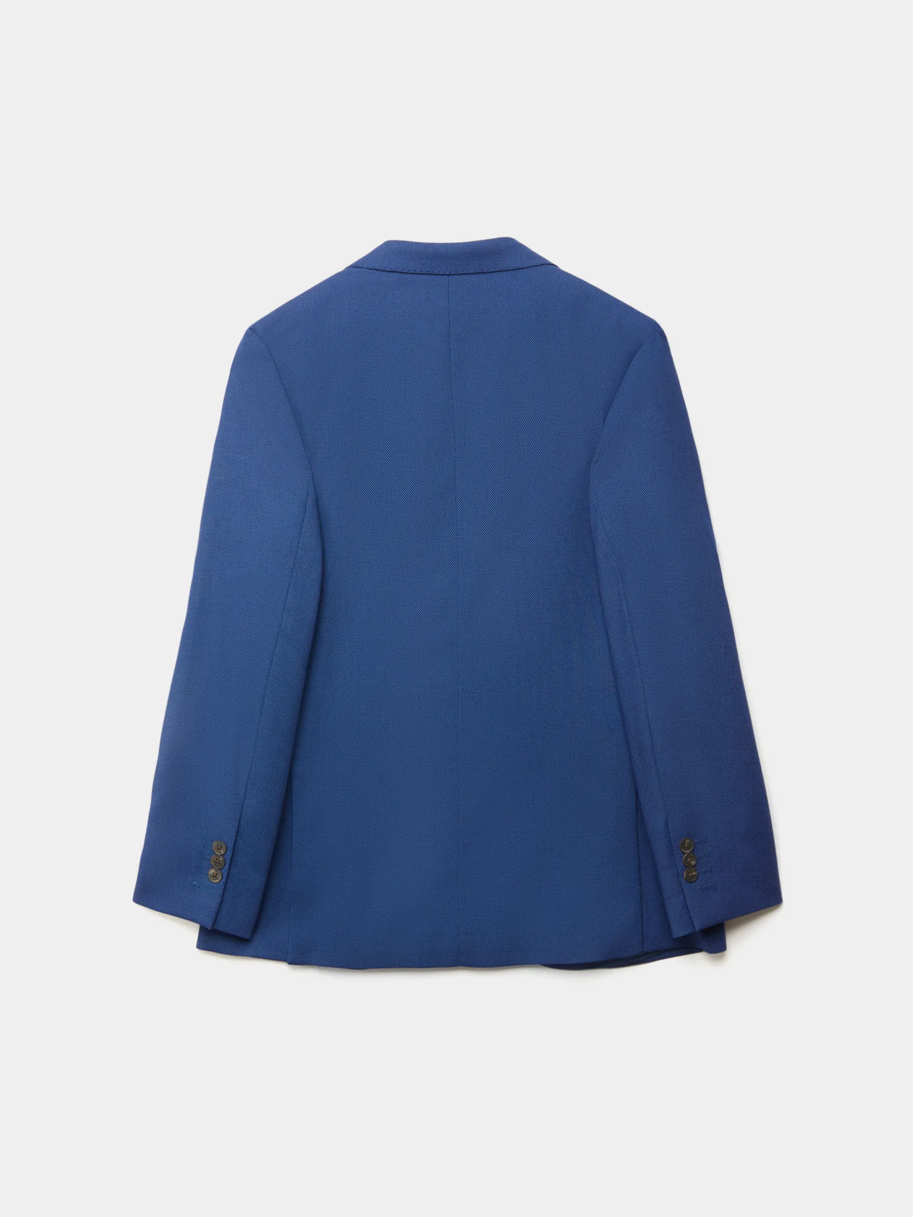 Americana con cuello y solapa en tejido de ojo de perdiz. Cierre central mediante botones, bolsillo de ojal en el pecho, tres bolsillos de solapa en la cintura y puños con botones decorativos. Interior forrado y con bolsillos.