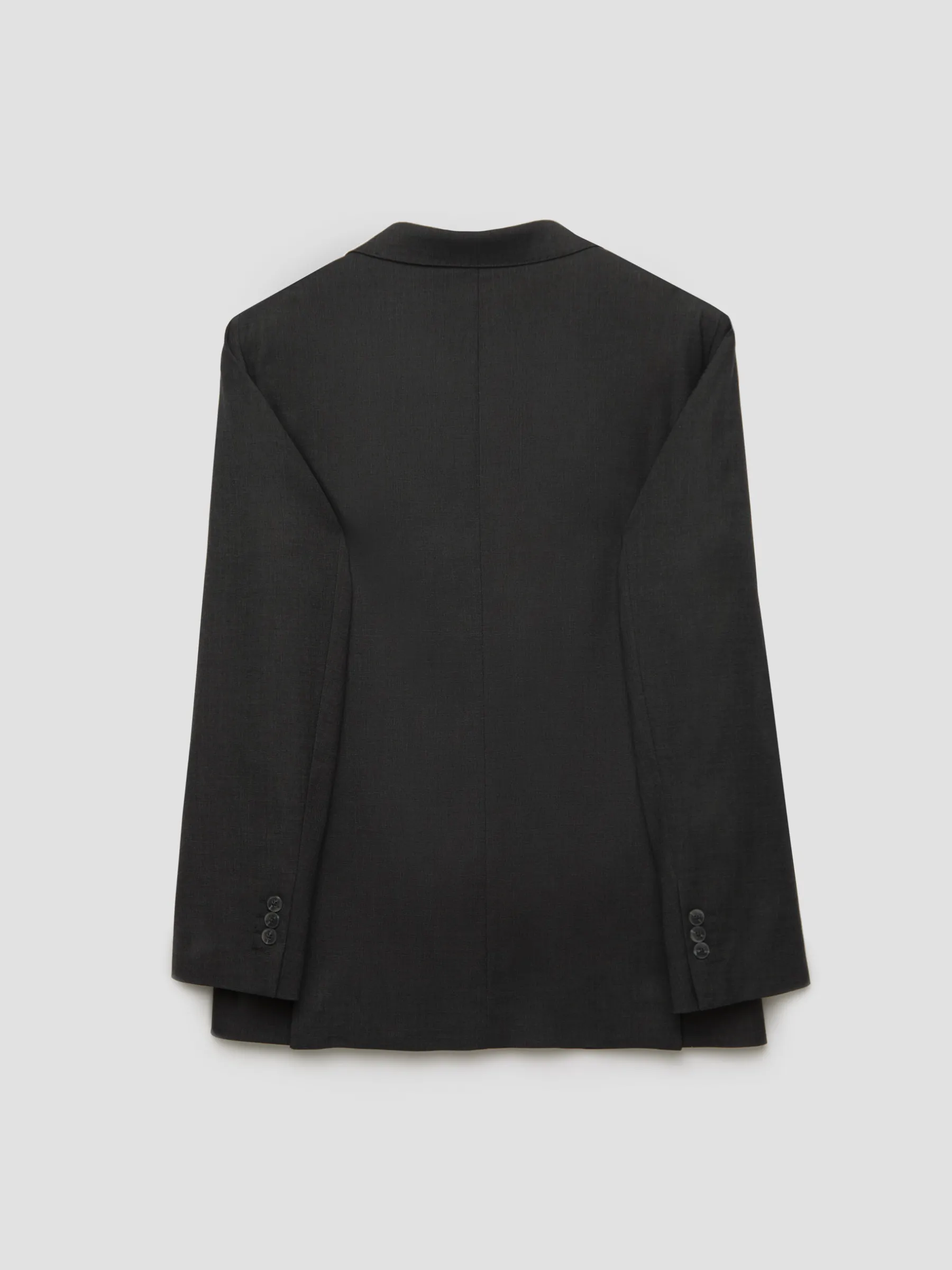 Americana con tejido fi fil de cierre central simple mediante botones y con cuello y solapa. Bolsillo de ojal en el pecho, tres bolsillos de solapa en la cintura y puños con botones en su terminación. Pinzas en el delantero. Interior forrado y con bolsillos.