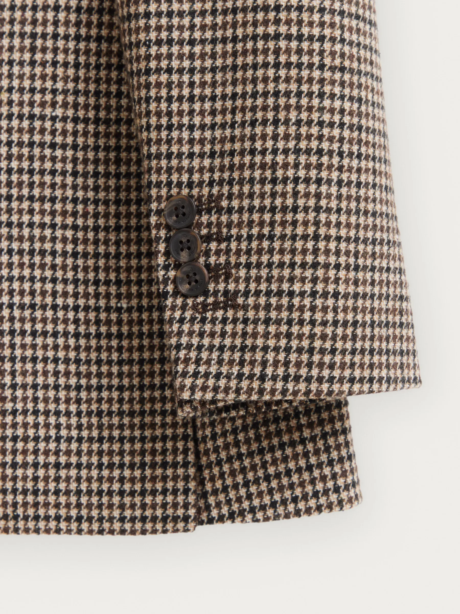 Americana confeccionada en tejido a cuadros de corte slim fit. Cuenta con cuello y solapa, cierre central simple mediante dos botones y puños con botones decorativos. Pinzas en el frontal, tres bolsillos de solapa en la cintura y un bolsillo a la altura del pecho. Interior forrado con dos bolsillos.
