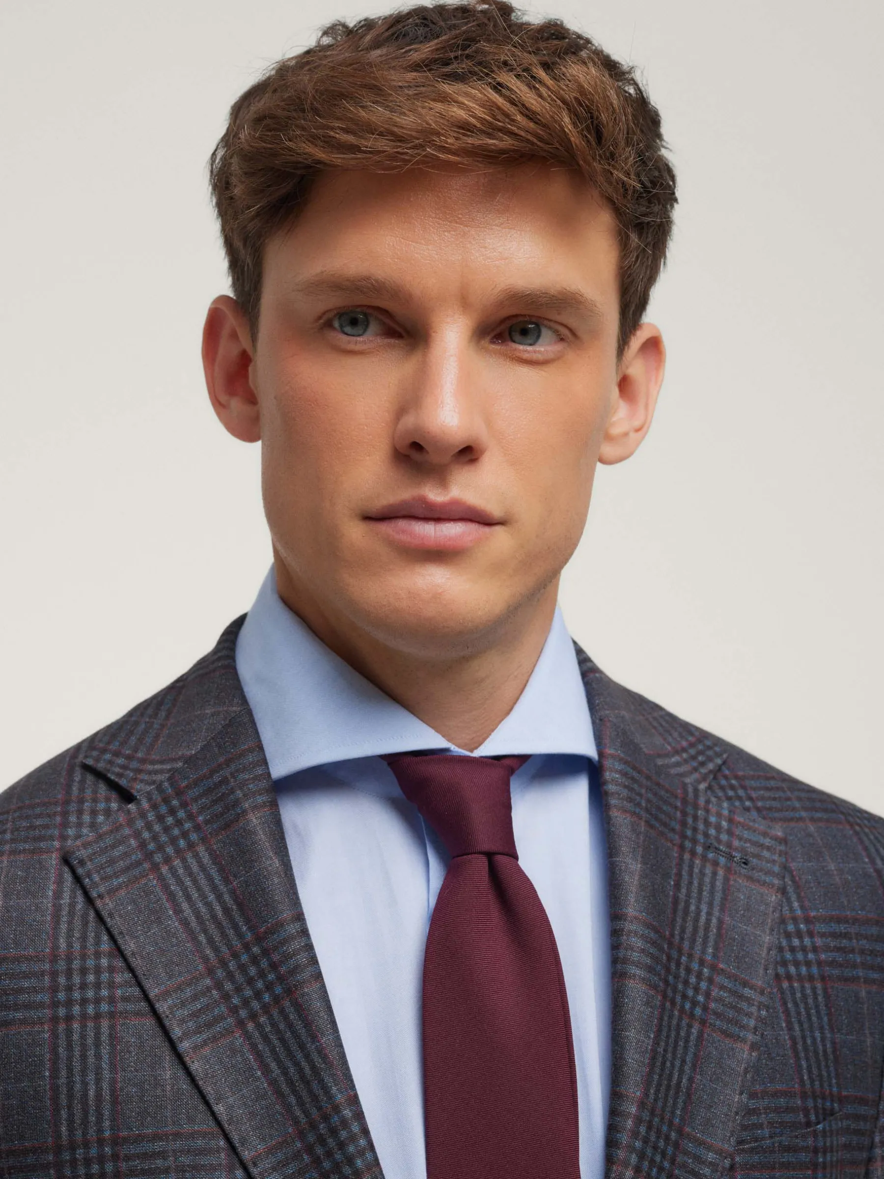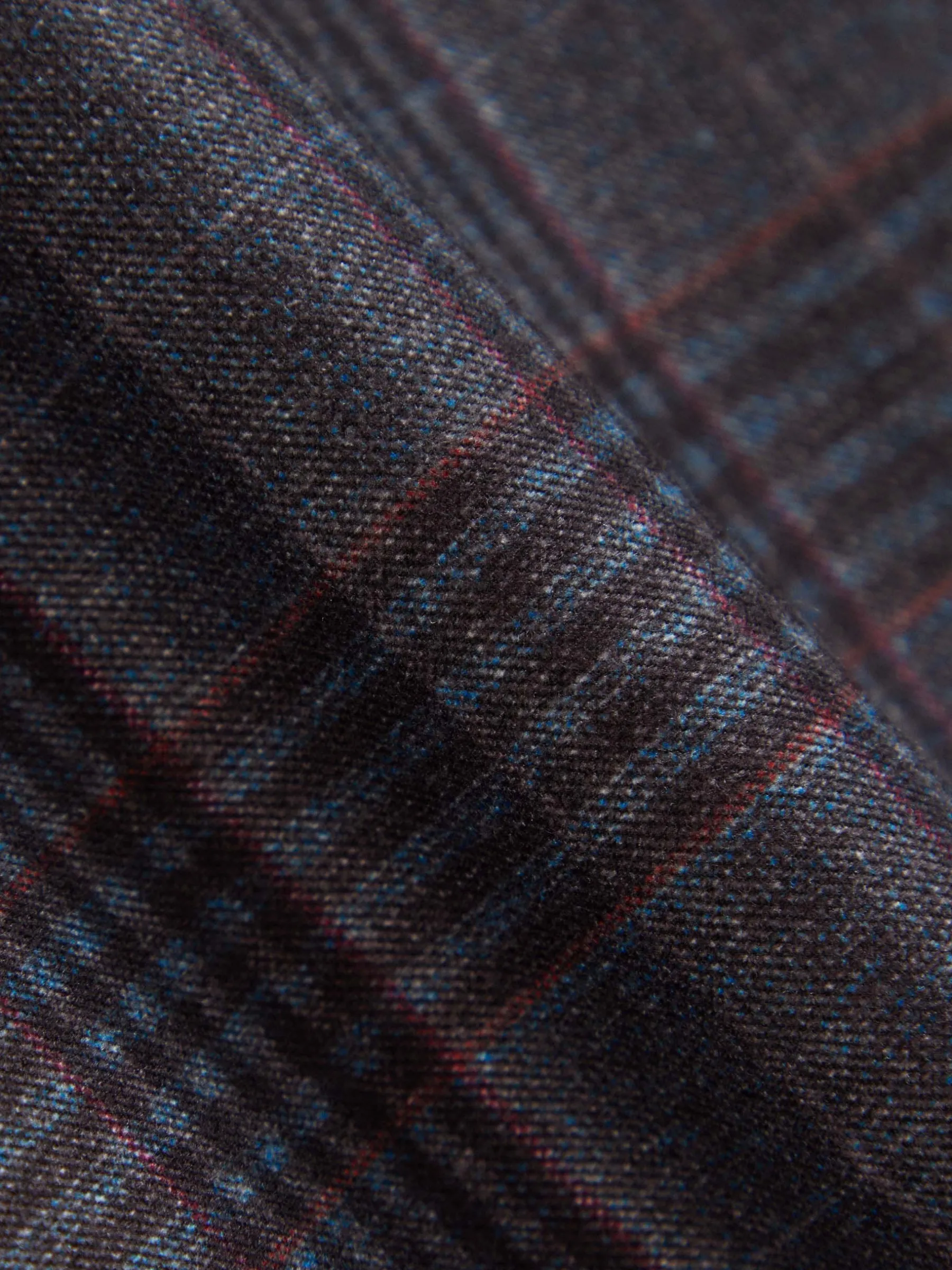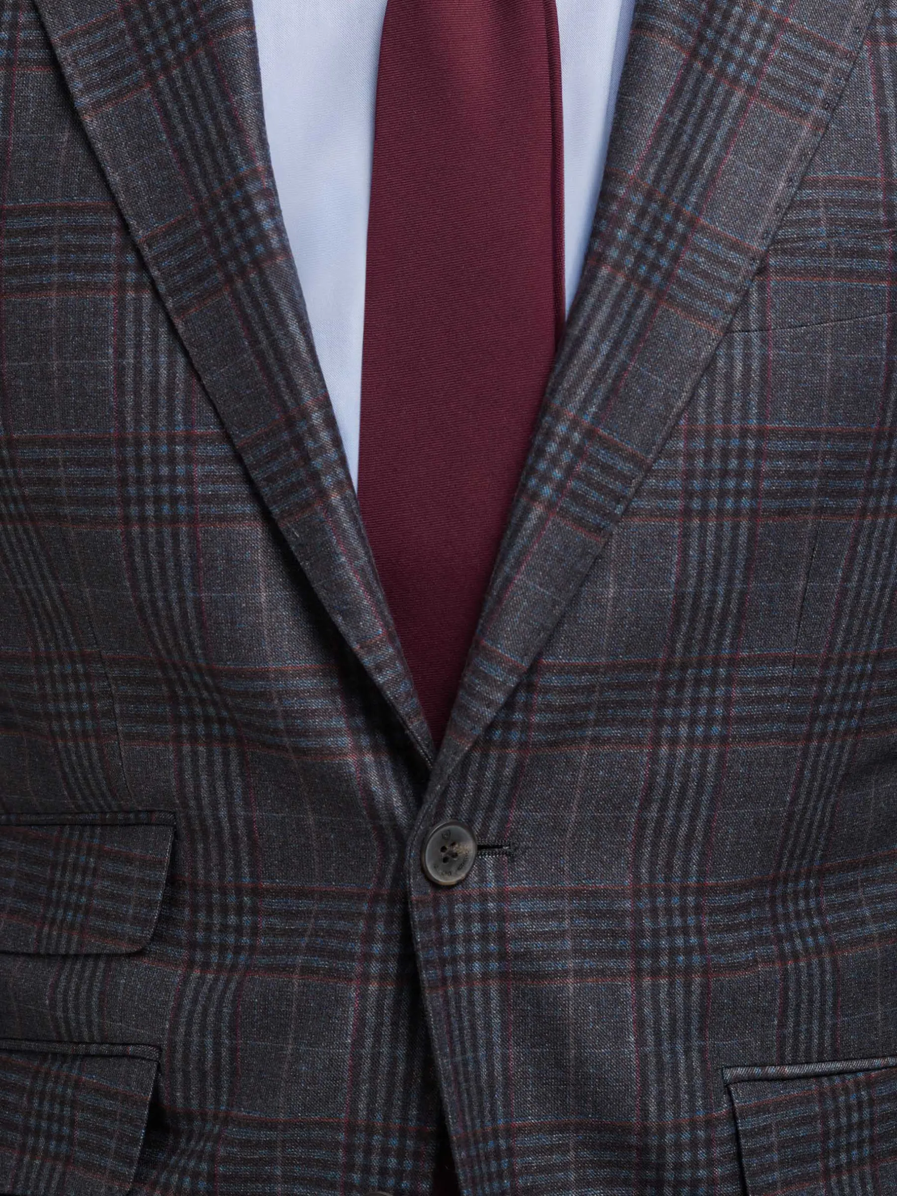 Americana confeccionada en tejido a cuadros de corte slim fit. Cuenta con cuello y solapa, cierre central simple mediante dos botones y puños con botones decorativos. Pinzas en el frontal, tres bolsillos de solapa en la cintura y un bolsillo a la altura del pecho. Dos bolsillos en el interior.