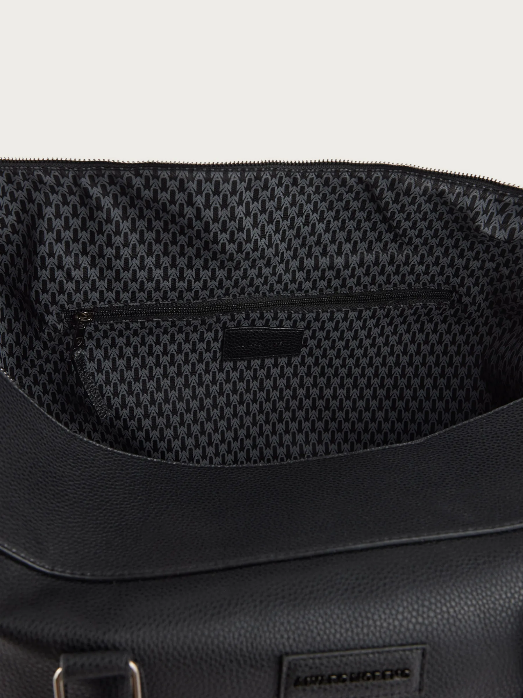 Bolsa de viaje con asas superiores y correa desmontable por mosquetones. Cuenta con un amplio compartimento principal de cierre mediante cremallera, bolsillo interior y uno exterior. Detalles personalizados. Forrado en su interior.