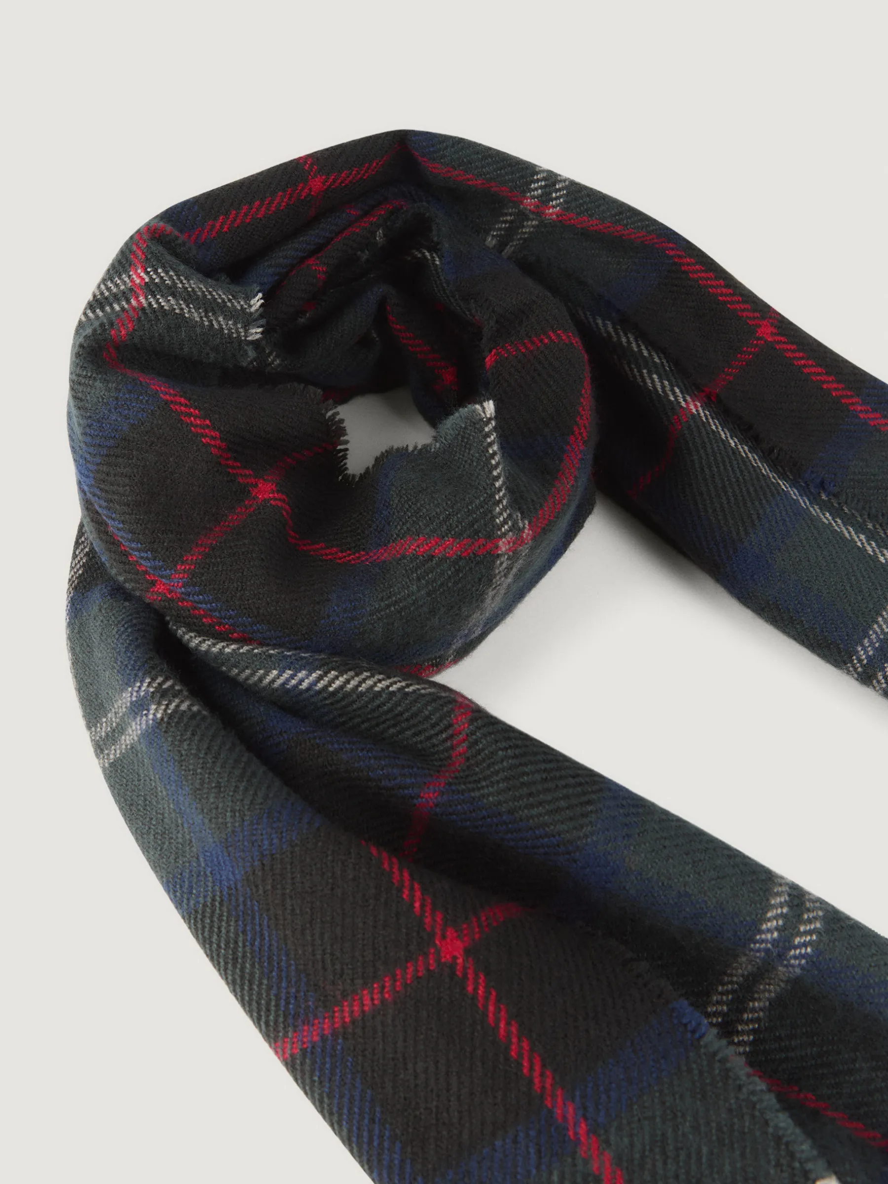 Bufandas con diseño de cuadros confeccionada en 100% acrílico. Terminación de flecos decorativos y tacto suave.