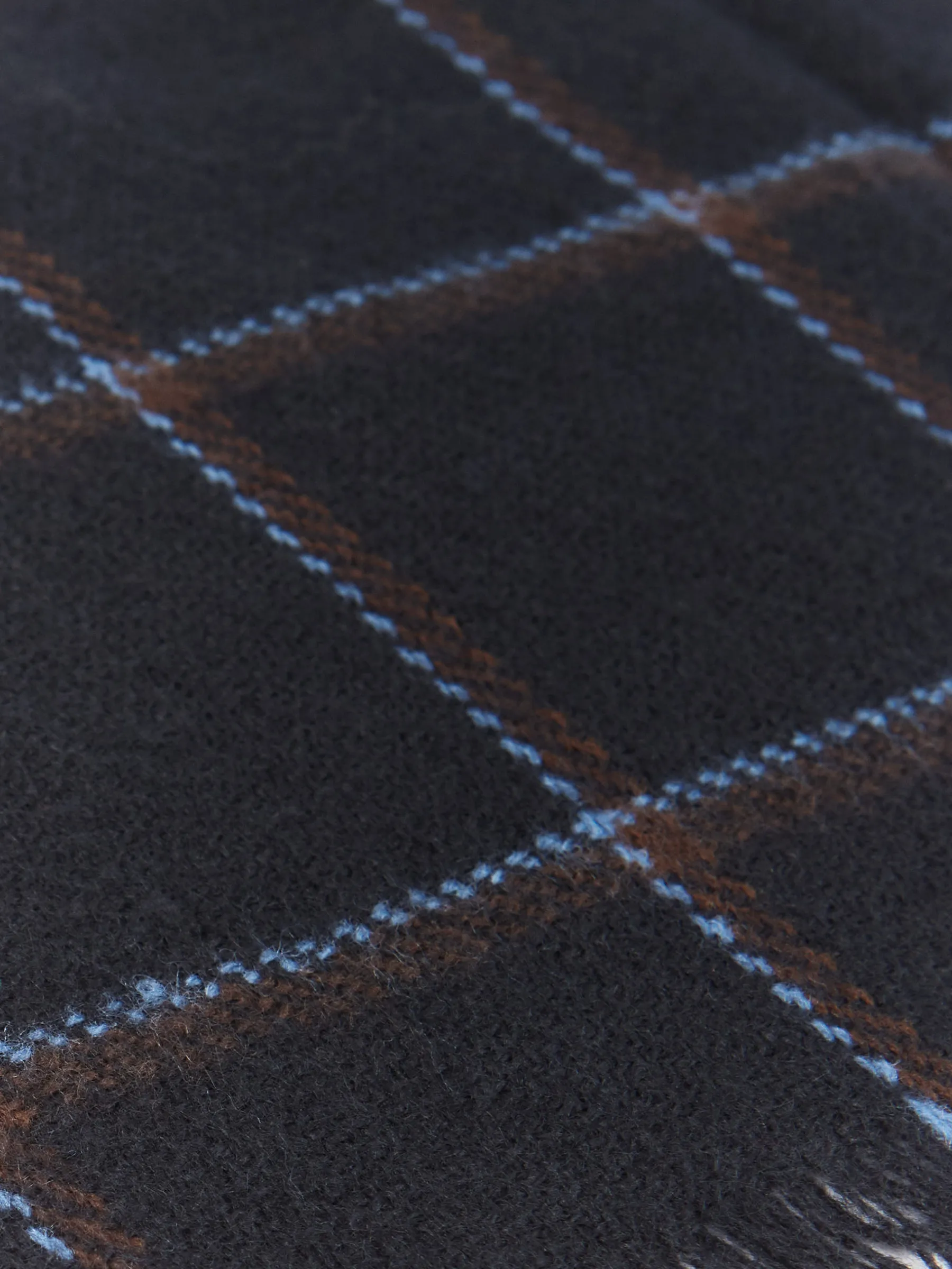 Bufandas con diseño de cuadros confeccionada en 100% acrílico. Terminación de flecos decorativos y tacto suave.
