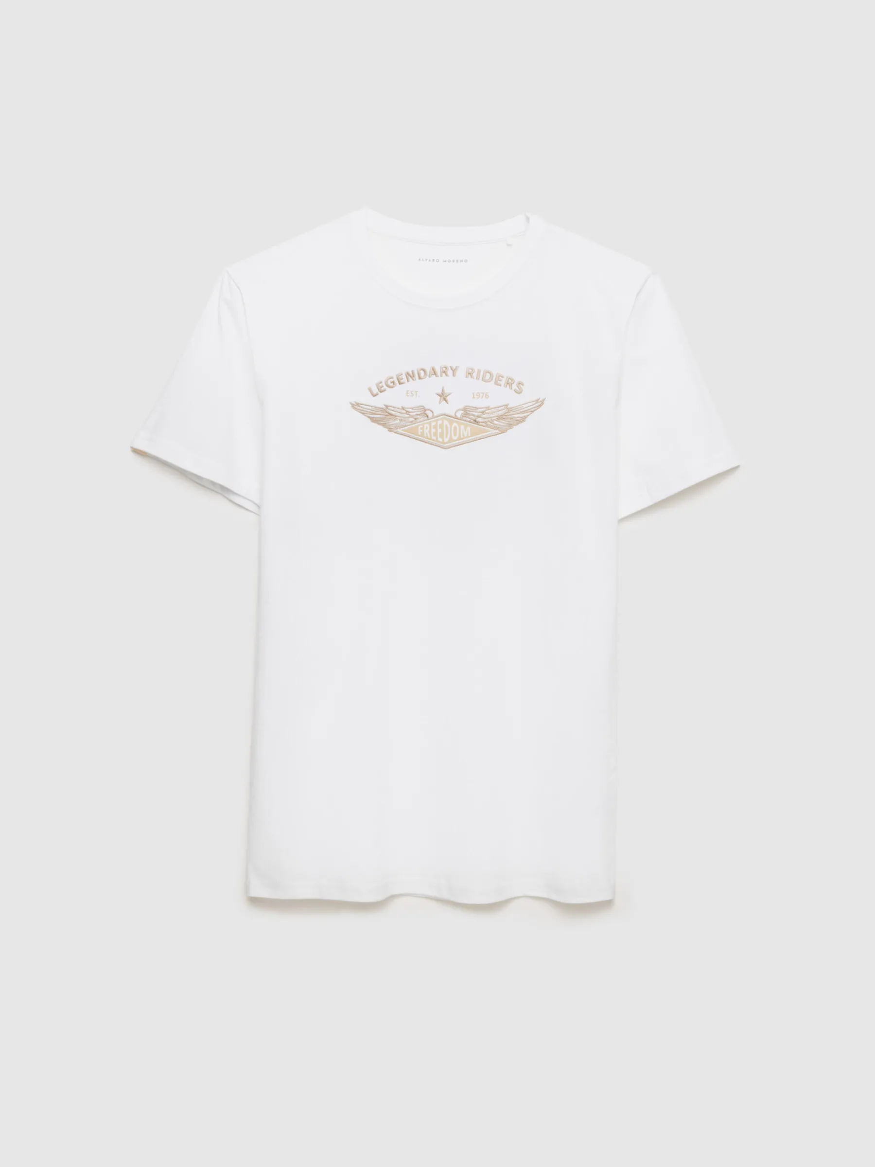 Camiseta con estampado personalizado en el frontal. Cuenta con cuello redondo, manga corta y corte regular fit.