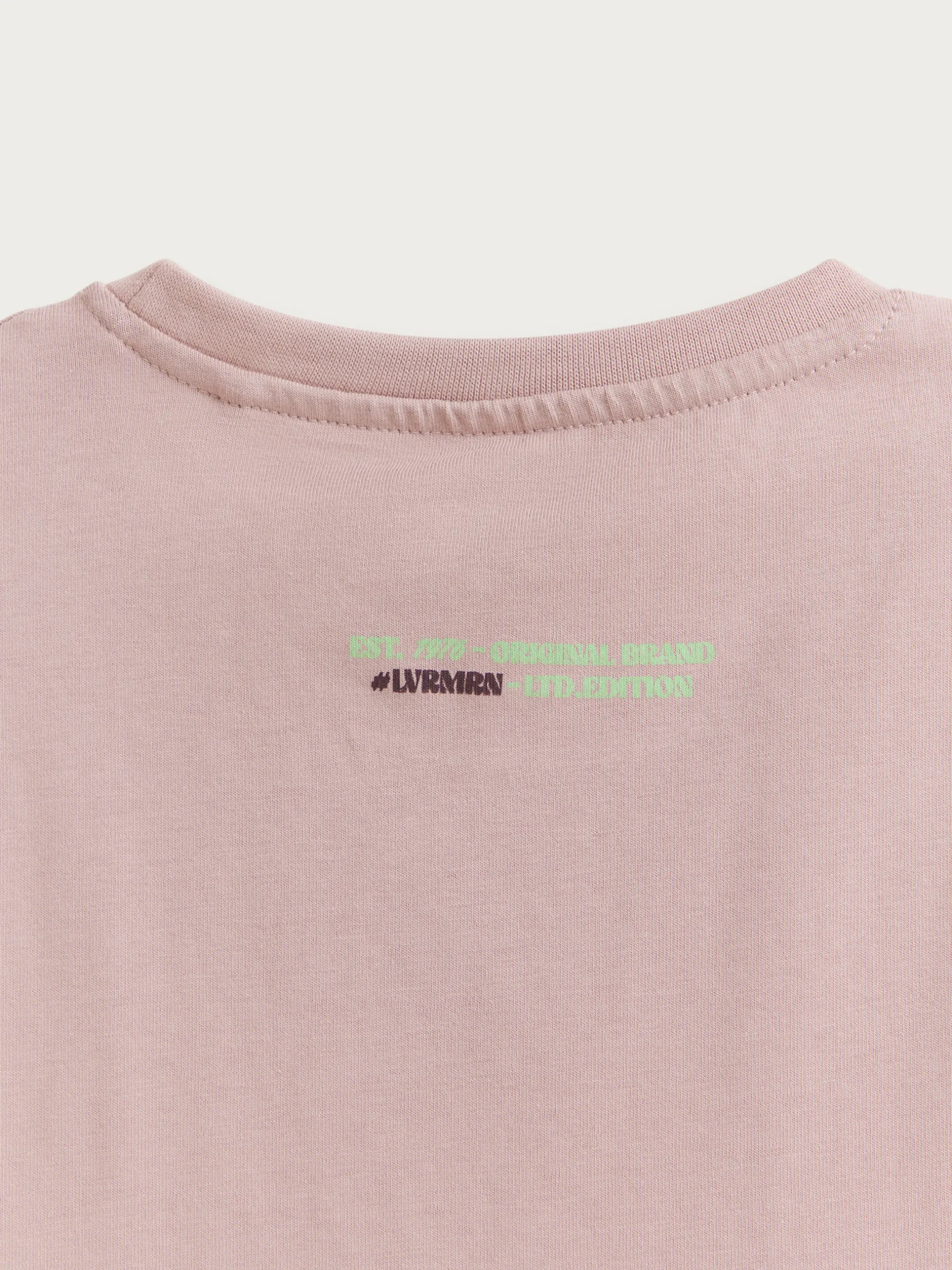 Camiseta confeccionada en algodón de corte regular fit. Cuenta con cuello redondo, manga corta y detalle personalizado estampado en la parte delantera y trasera.