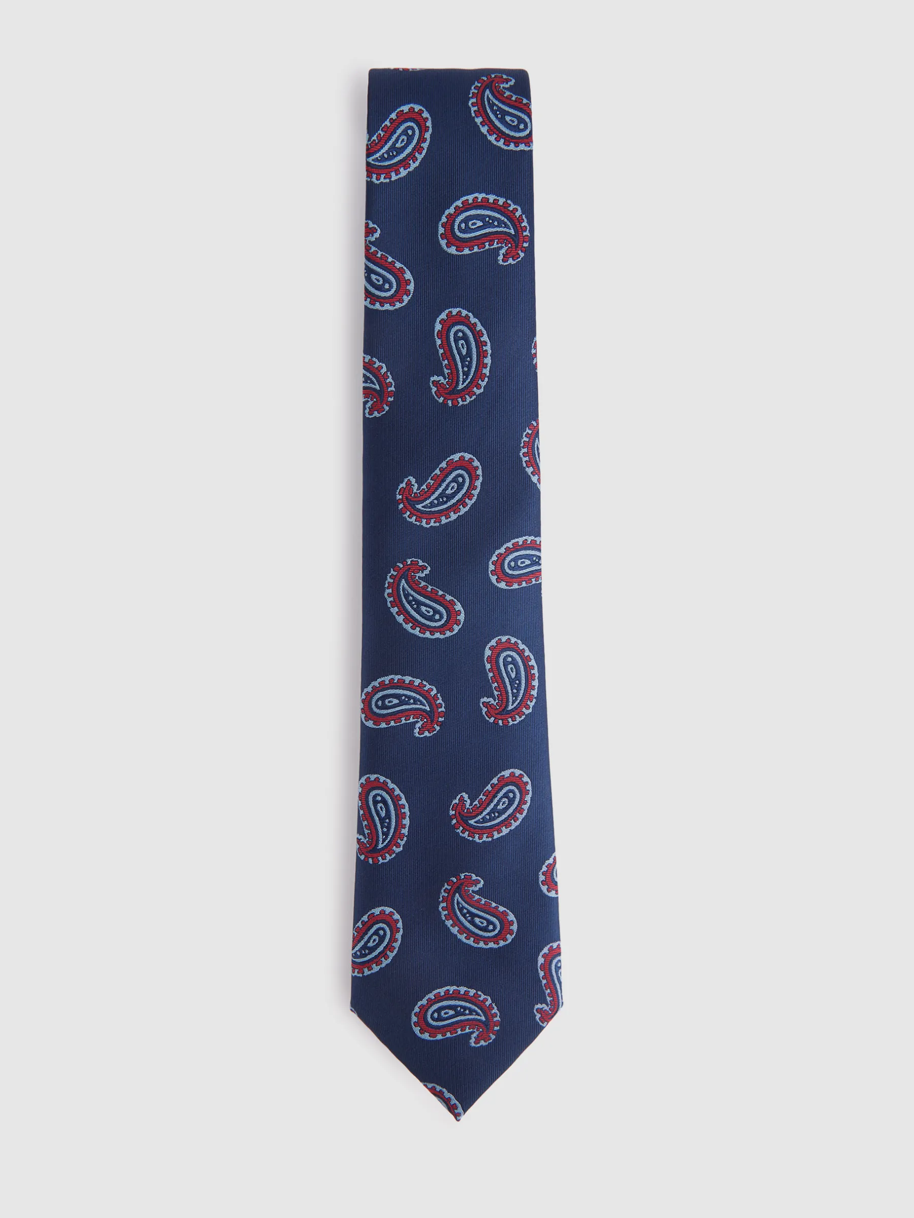 Corbata estilo jacquard con diseño estampado personalizado. Cuenta con el logo de la marca grabado en el interior.