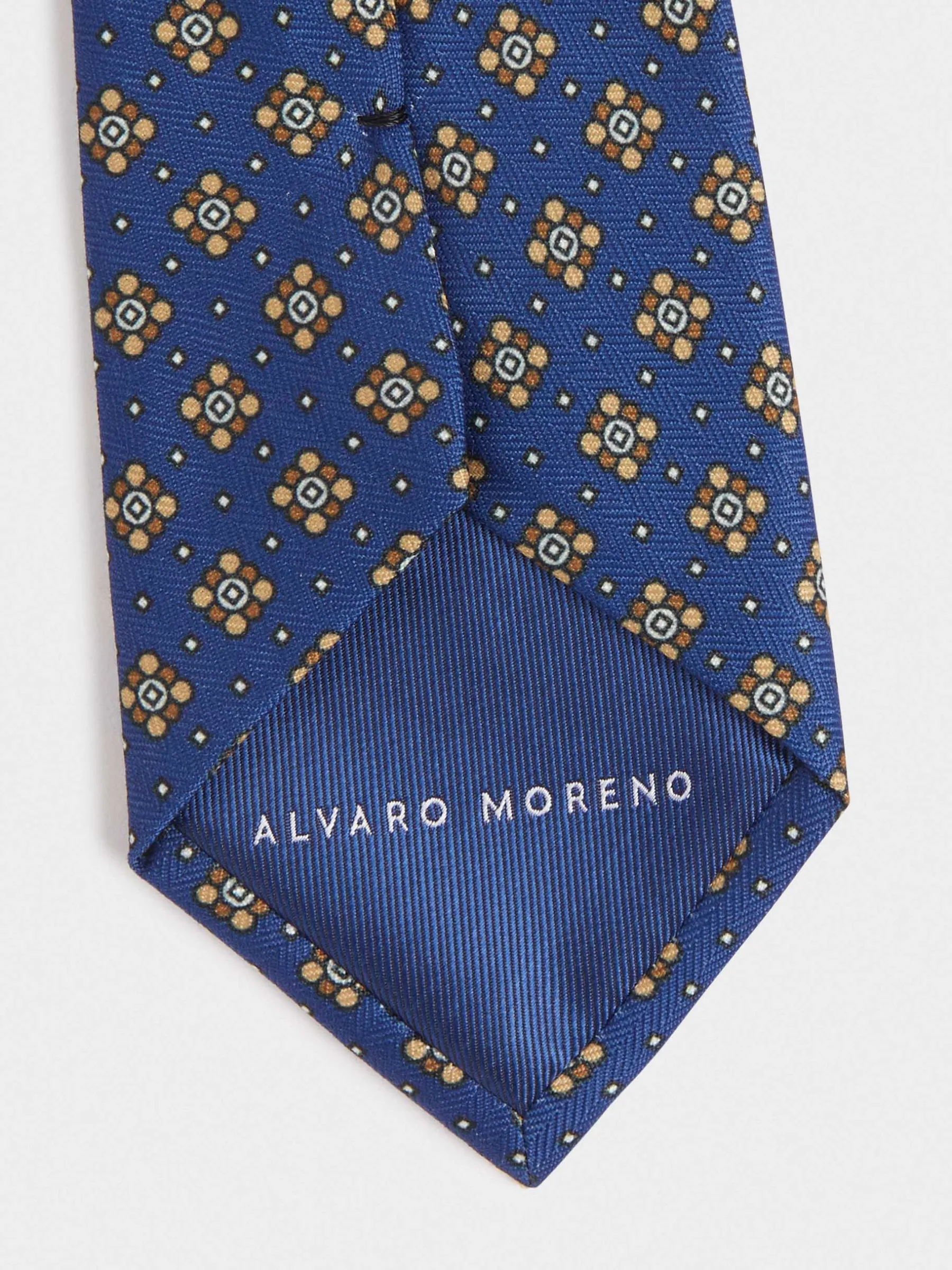 Corbata con diseño estampado personalizado confeccionada en 100% poliéster. Cuenta con el logo de la marca grabado en el interior.