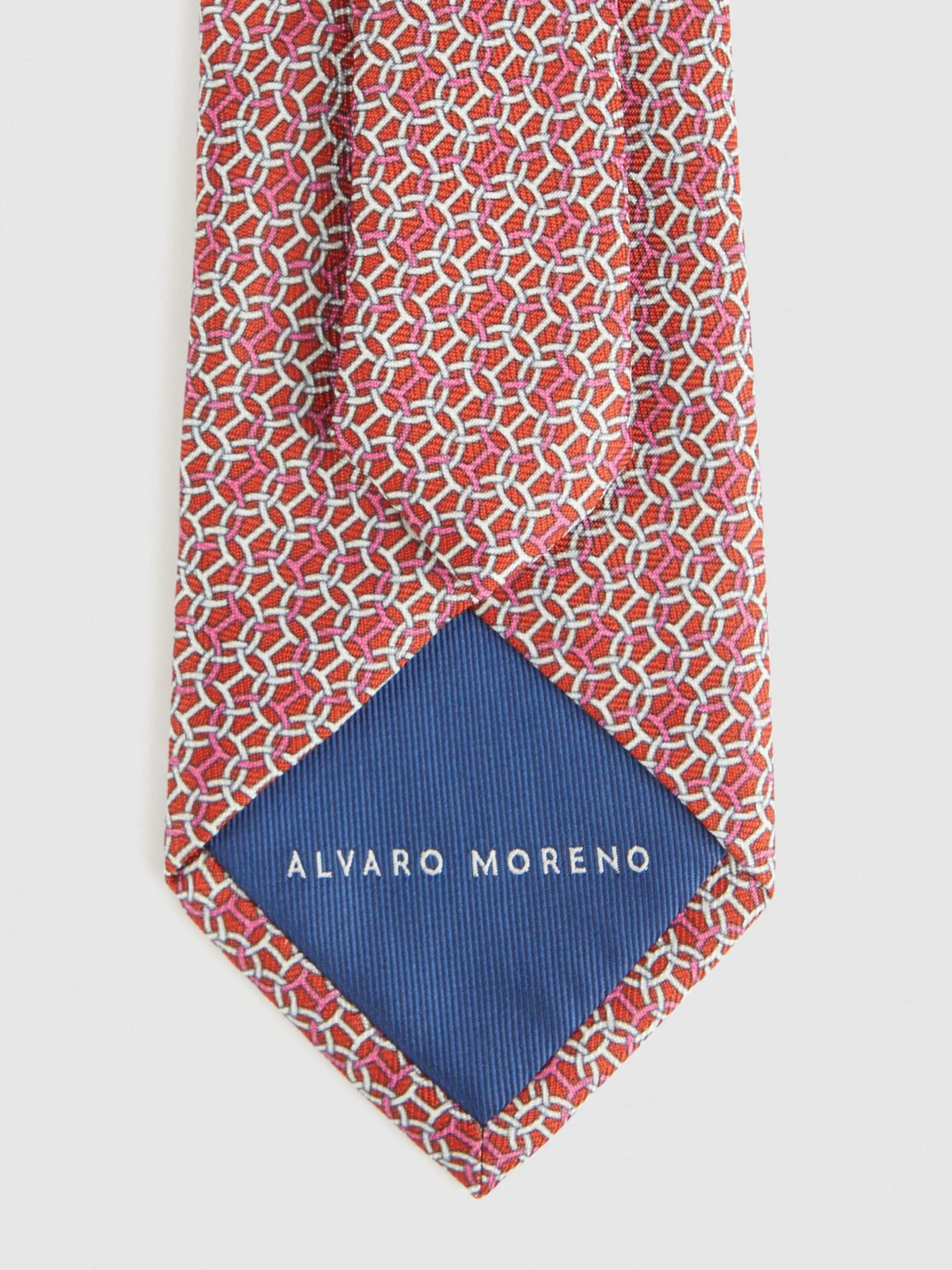 Corbata con diseño estampado personalizado confeccionada en 100% poliéster. Cuenta con el logo de la marca grabado en el interior.