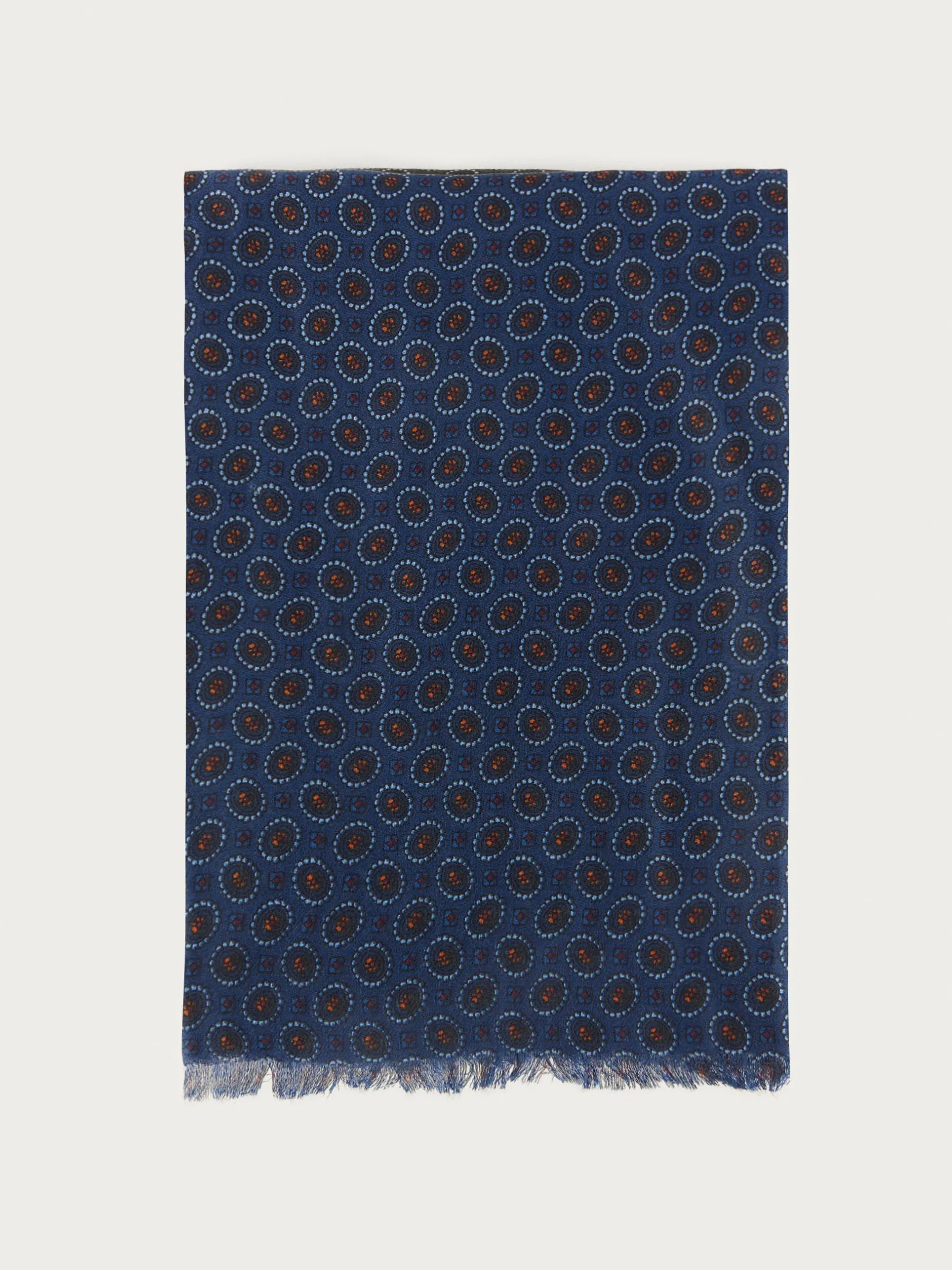 Foulard de diseño personalizado estampado confeccionado en tejido suave y cálido. Terminación con flecos.