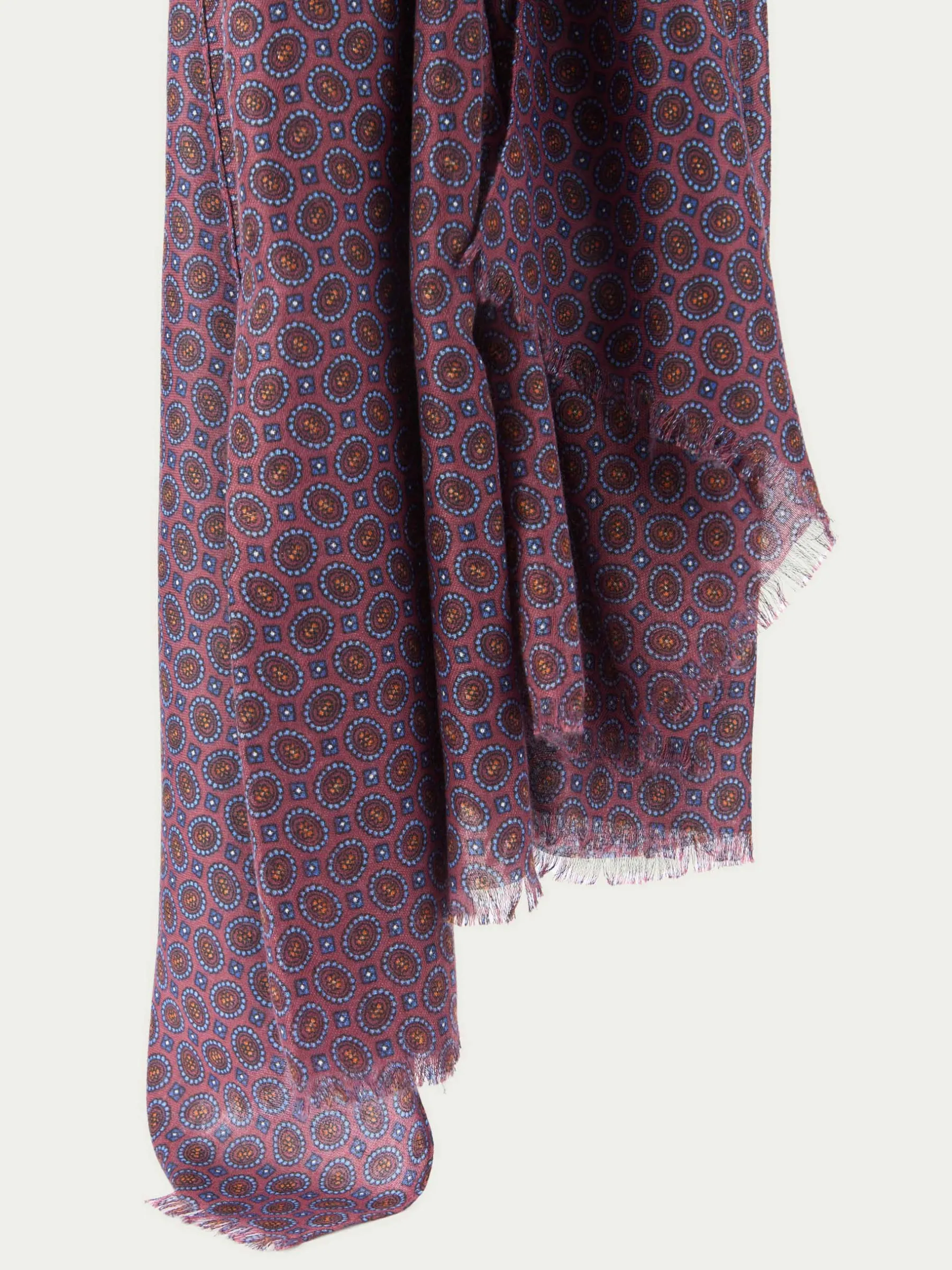 Foulard de diseño personalizado estampado confeccionado en tejido suave y cálido. Terminación con flecos.