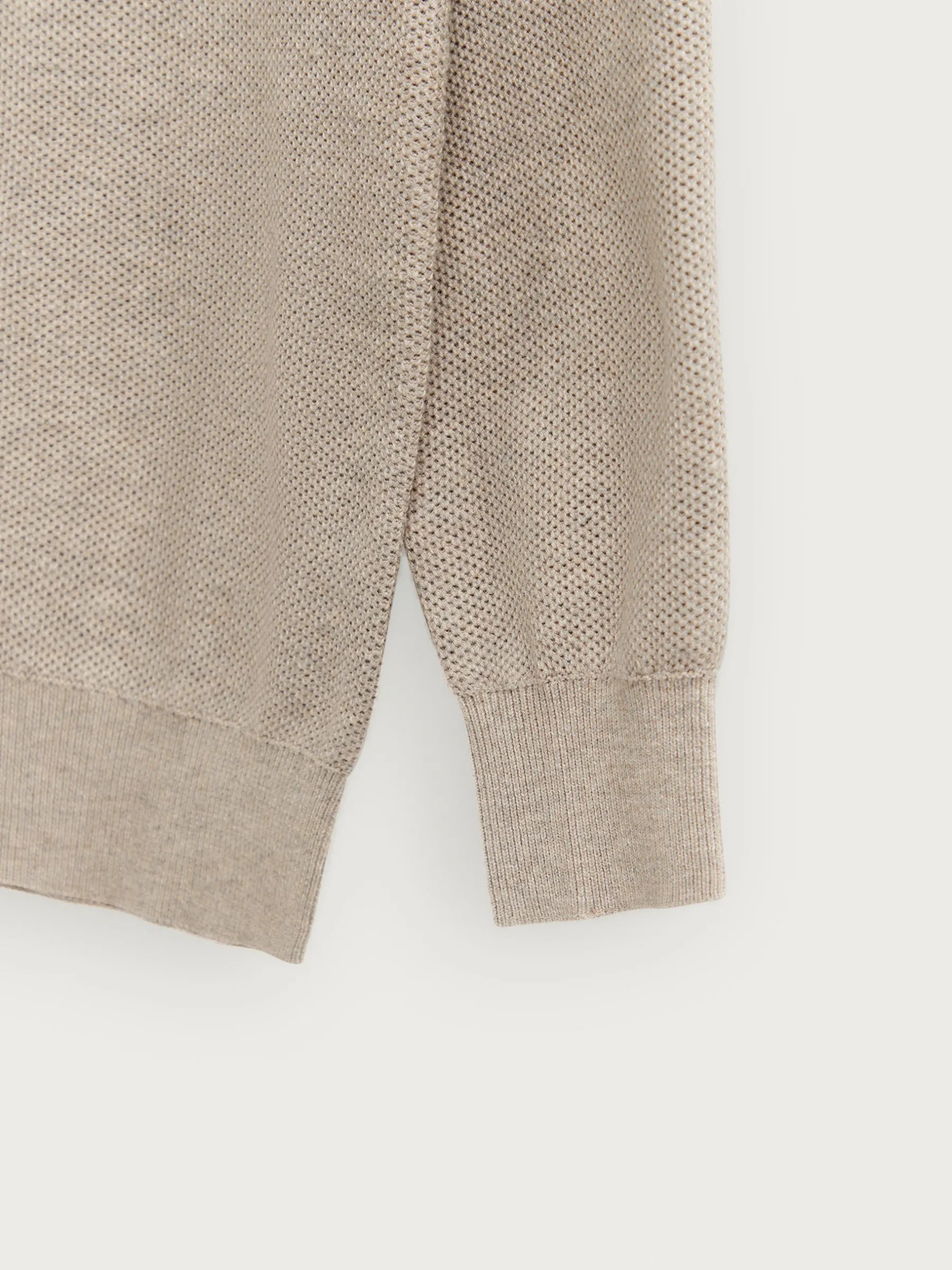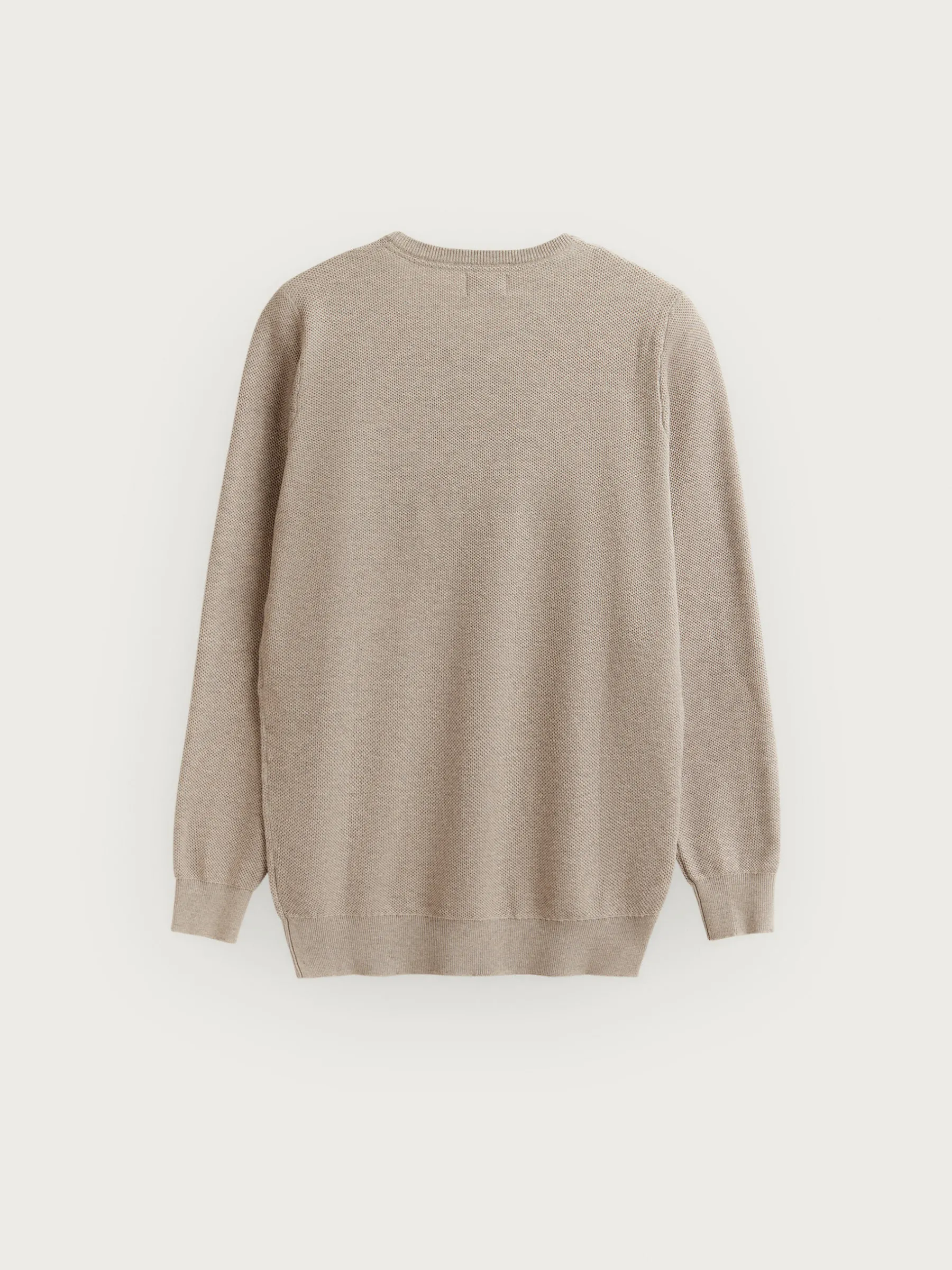 Jersey con tejido de estructura, cuello a la caja y logo de la marca bordado en el frontal al tono. Bajo, puños y cuello en acabado ribeteado de punto elástico para mayor comodidad. Corte regular fit.