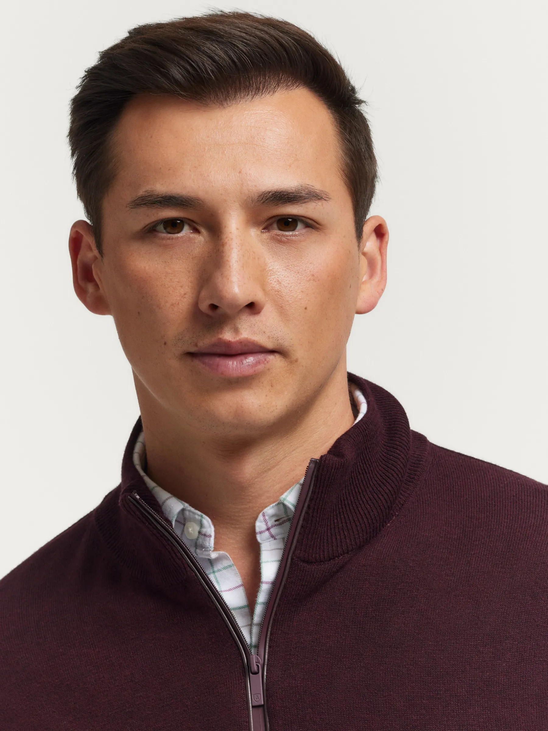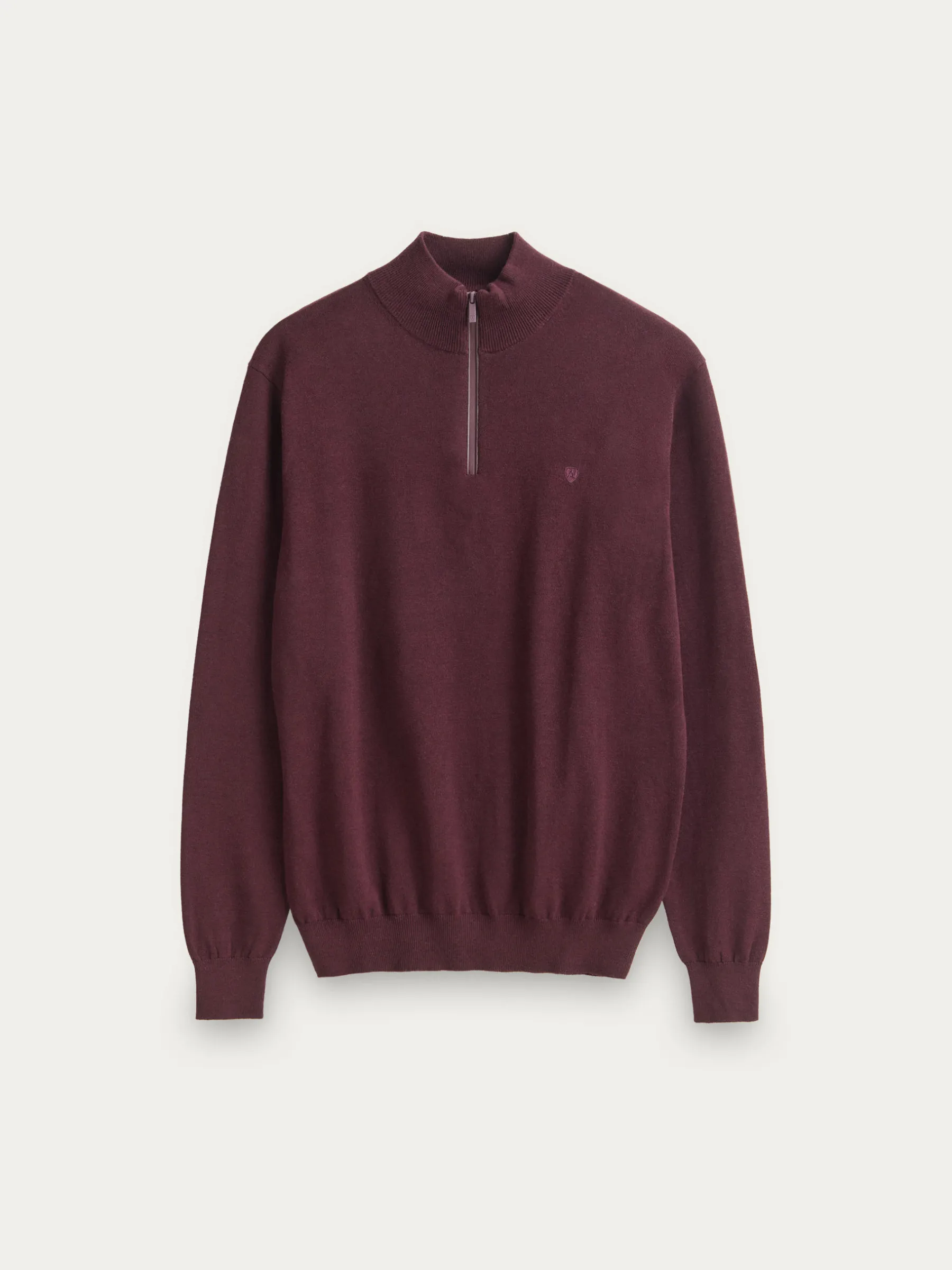 Jersey de corte regular confeccionado en algodón. Cuello alto con medio cierre de cremallera. Logo bordado en el frontal al tono. Cuello, puños y bajo en acabado elástico.