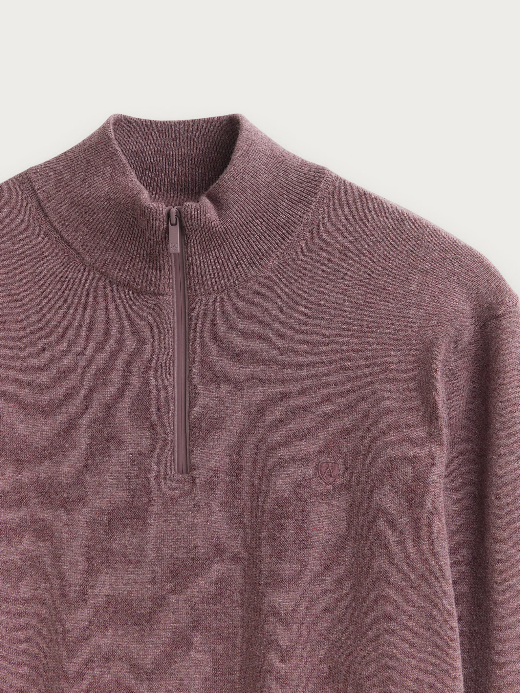 Jersey de corte regular confeccionado en algodón. Cuello alto con medio cierre de cremallera. Logo bordado en el frontal al tono. Cuello, puños y bajo en acabado elástico.