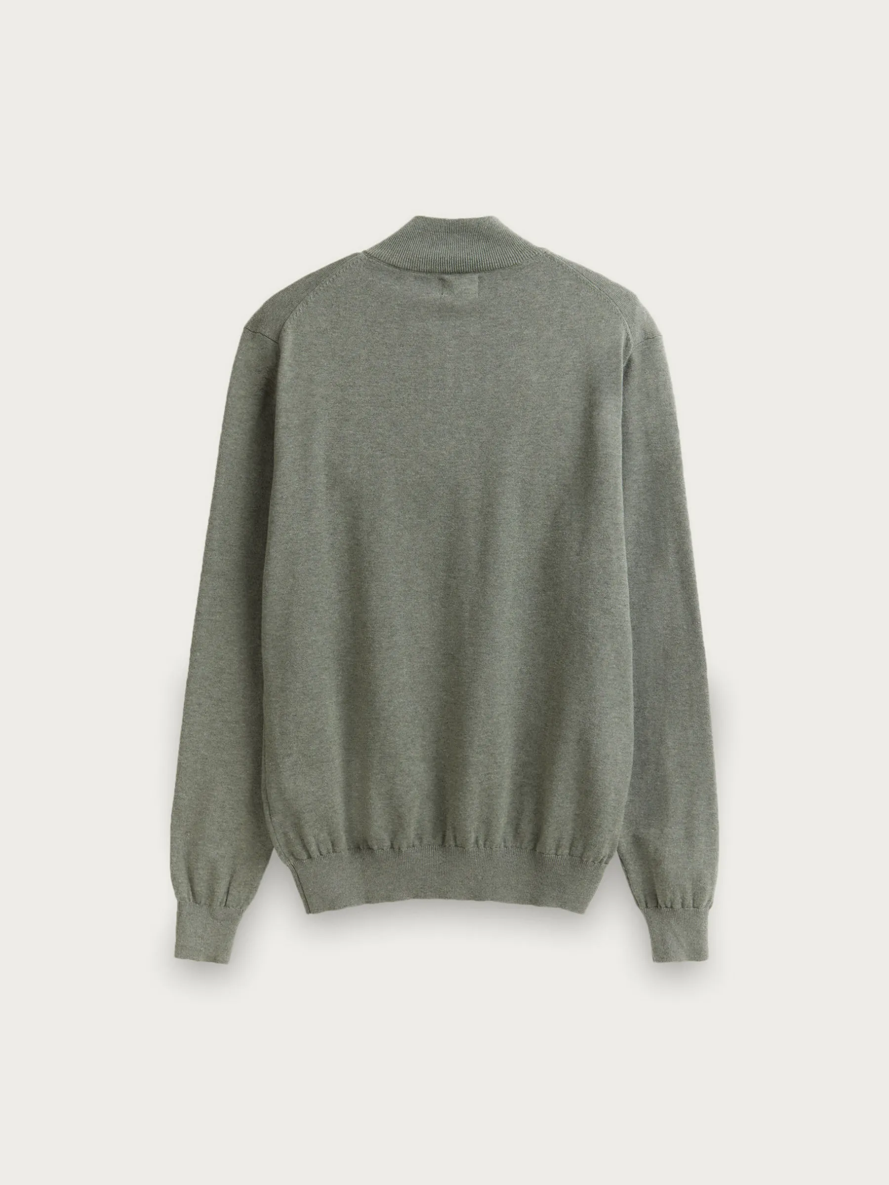 Jersey de corte regular confeccionado en algodón. Cuello alto con medio cierre de cremallera. Logo bordado en el frontal al tono. Cuello, puños y bajo en acabado elástico.