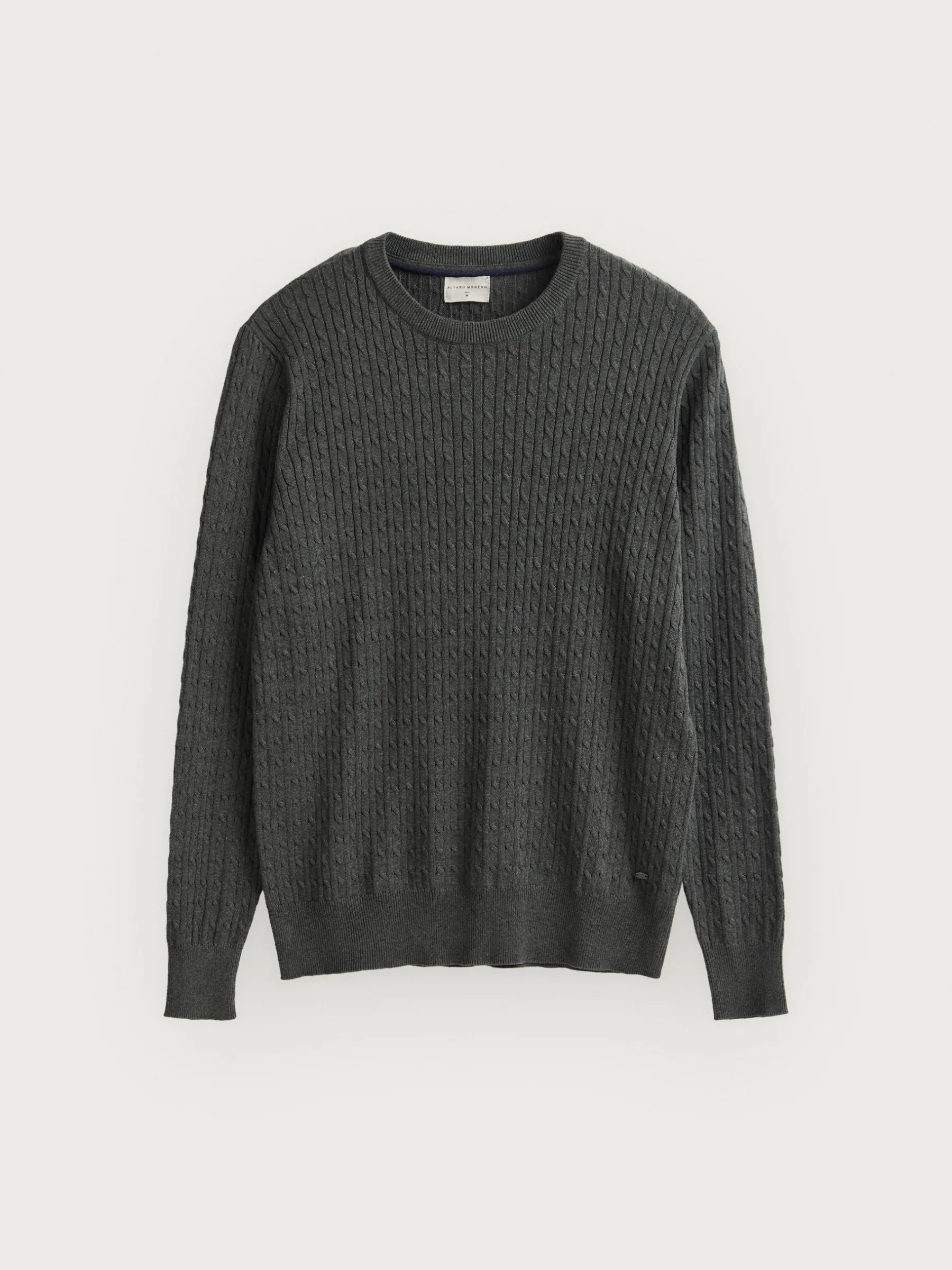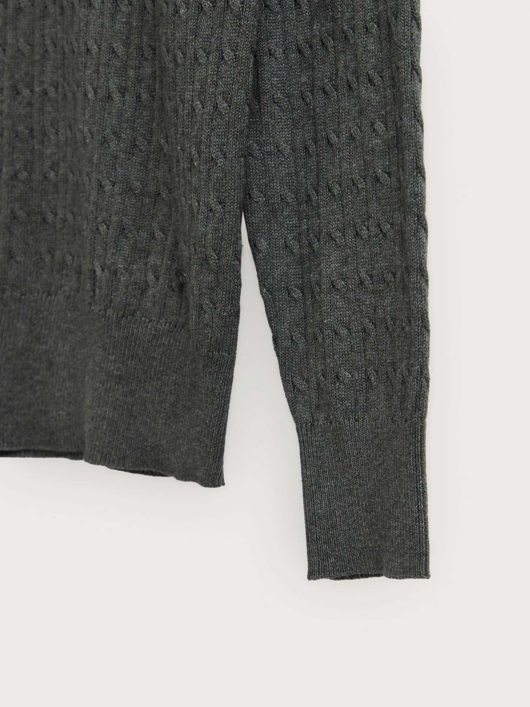 Jersey con estructura estilo ochos confeccionado en algodón. Cuenta con cuello redondo, manga larga y detalle metálico personalizado en el bajo. Cuello, puños y bajo en acabado ribeteado. Corte regular fit.