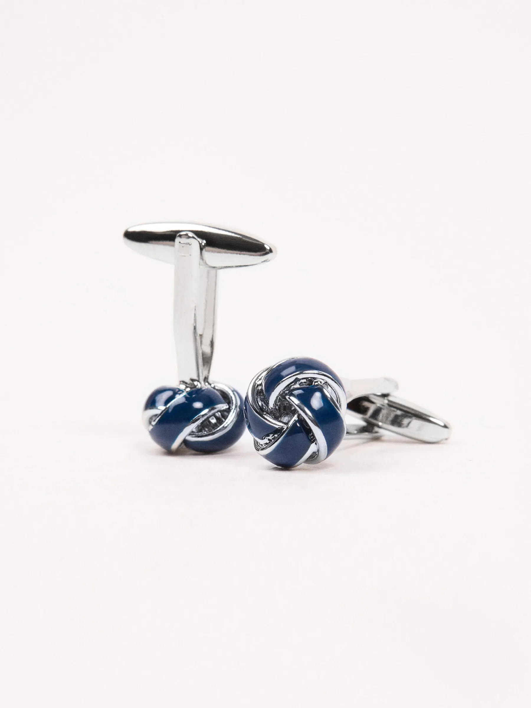 Gemelo metálico con forma de nudo que cuenta con esmalte en marino.