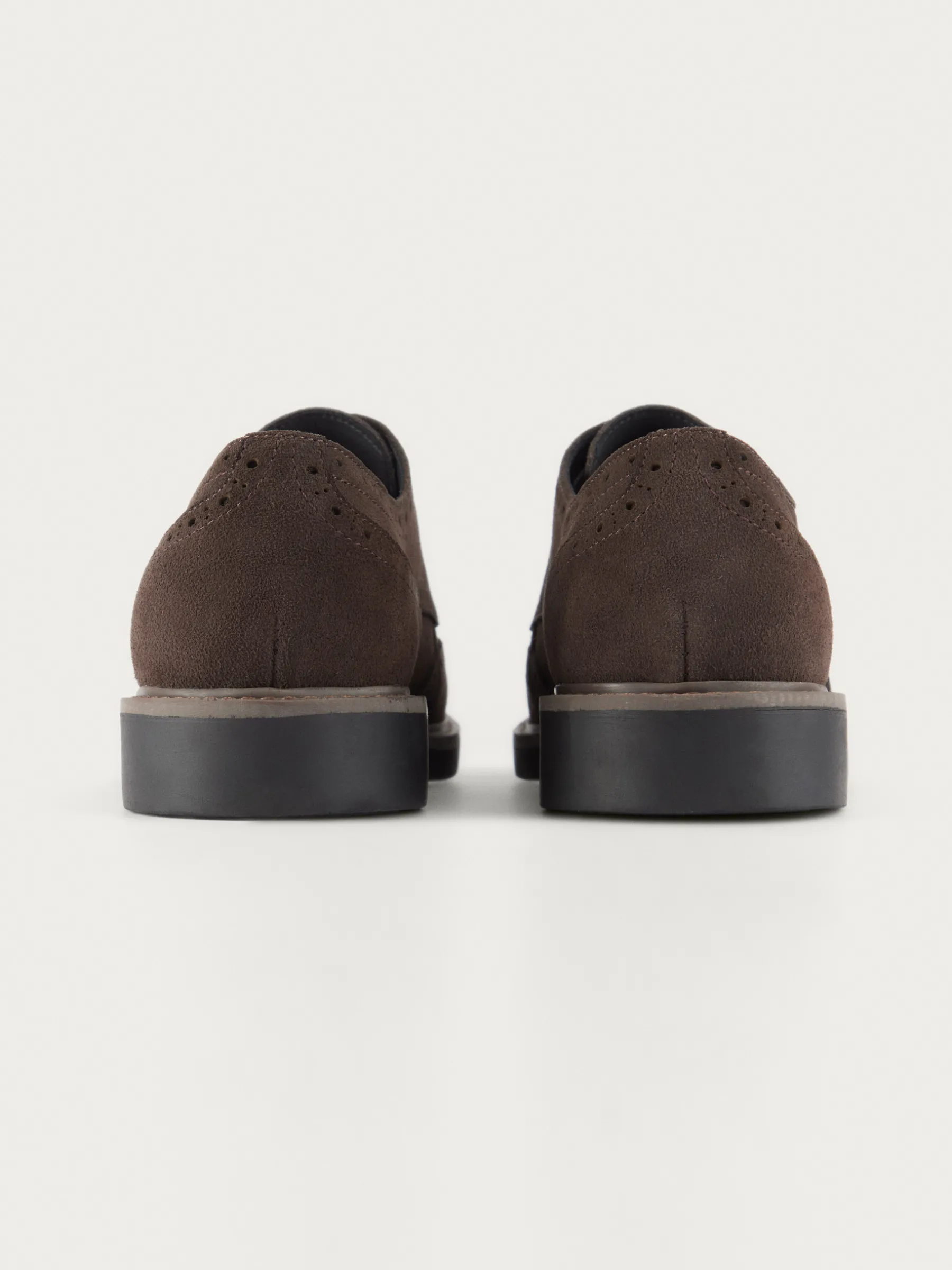 Zapatos confeccionados en serraje con detalles picados. Cuenta con cordones de hasta cuatro pasados, suela de goma antideslizante y punta redondeada.